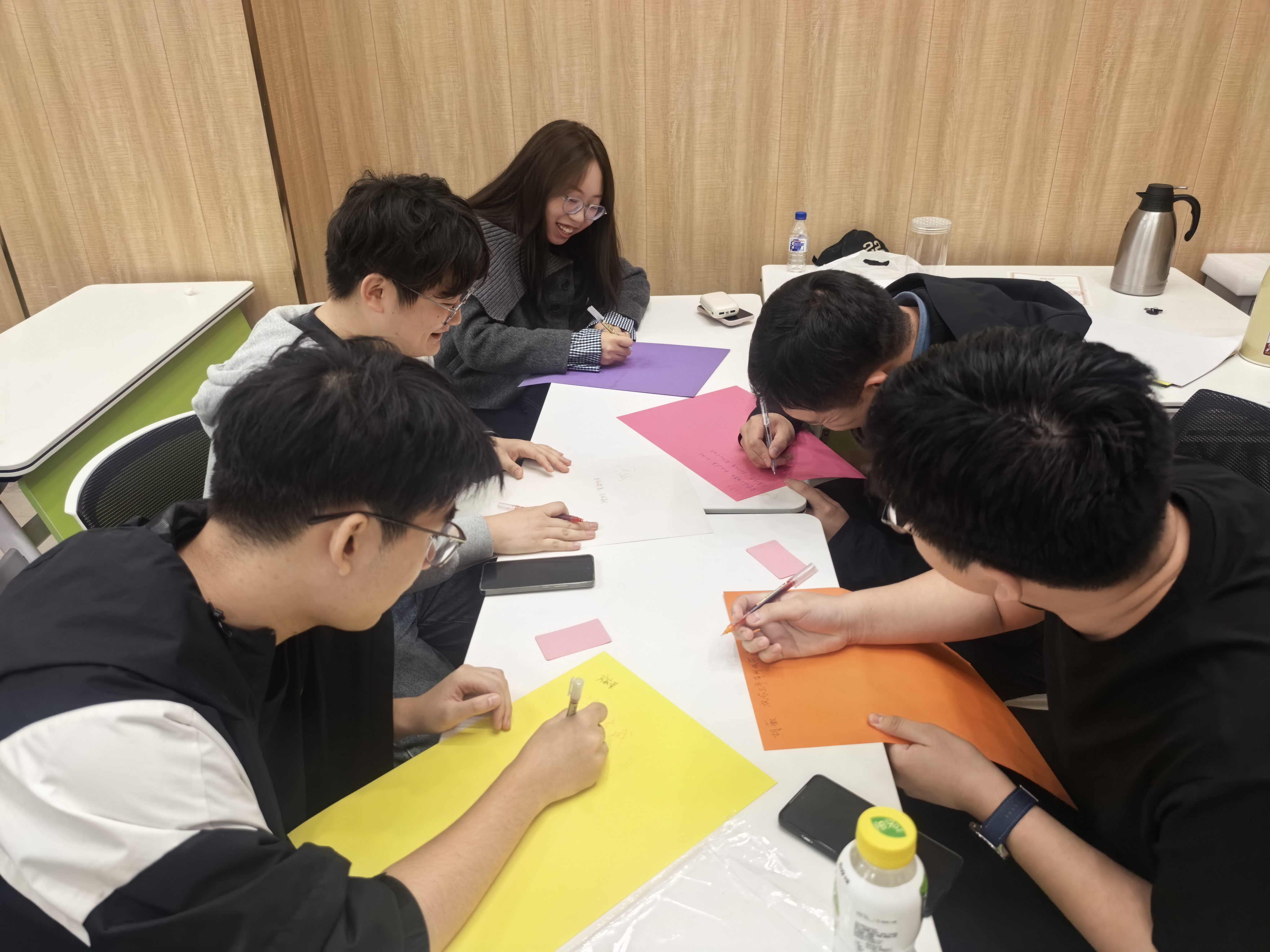 活动的最后一个环节是“我爱我班”。同学们将刚才活动中充满心意的纸条翻到背面,用三个词写下对班级未来的期待和愿景。“团结”“温暖”“共进步”“一起呐喊”“遇事互帮”……这些词汇将成为建设班级的小灯塔,照亮同学们未来的研究生时光。