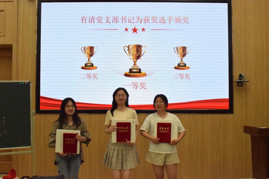 支部委员徐琳同志介绍比赛规则后,比赛正式开始。竞赛设有“基础必答题”、“抢答题”、“风险必答题”三个环节,参赛选手们在赛场中沉着思考、踊跃答题,展示出了扎实的党史知识储备和团队协作精神,各参赛队伍的基础必答题和抢答题回答均全部正确,比赛现场掌声连连。选手们抢答时非常激烈,而充满挑战性的风险必答题不仅考验了选手的知识素养,更看出他们对党史知识的深刻理解。面对主持人的发问,参赛队员从容作答,比分一度胶着。台上较量“剑拔弩张”,台下掌声不断。通过精彩角逐,凭借充分的知识储备、优秀的临机表现展现了一次又一次的精彩对决!经过2个小时的激烈角逐,大赛评选出优胜队伍1个,由亮剑队获得。