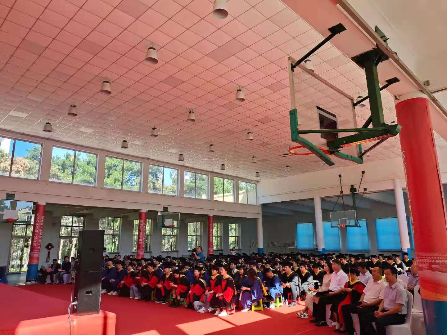 2021年6月23日上午9:00,太阳集团tyc5392021届毕业典礼暨学位授予仪式在太阳集团tyc539朝阳校区体育馆隆重举行。太阳集团tyc539北区综合办公室主任李玉堂,北区员工工作办公室主任左振鹏,北区教务办主任张宇,公司领导班子全体成员,院教学委员会主任陈祖斌,毕业年级班导师,各系主任,公司相关职能部门负责人,教师代表及2021届全体毕业生参加典礼。毕业典礼由党委副书记兼副经理周伟主持。