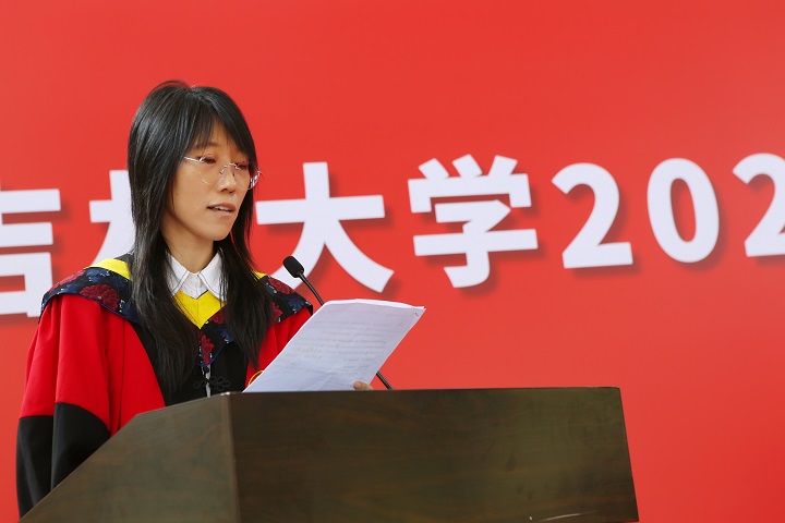 教师代表杨光教授寄语毕业生坚守学术精神、勇担时代使命,他阐述了公司仪器科学与技术、电气工程两个学科在服务国家重大战略需求中的重要作用,鼓励各位毕业生在今后的学习和工作中,无论身处何方、从事何种职业,都要谨记自己“仪电人”的身份,为祖国的建设添砖加瓦。