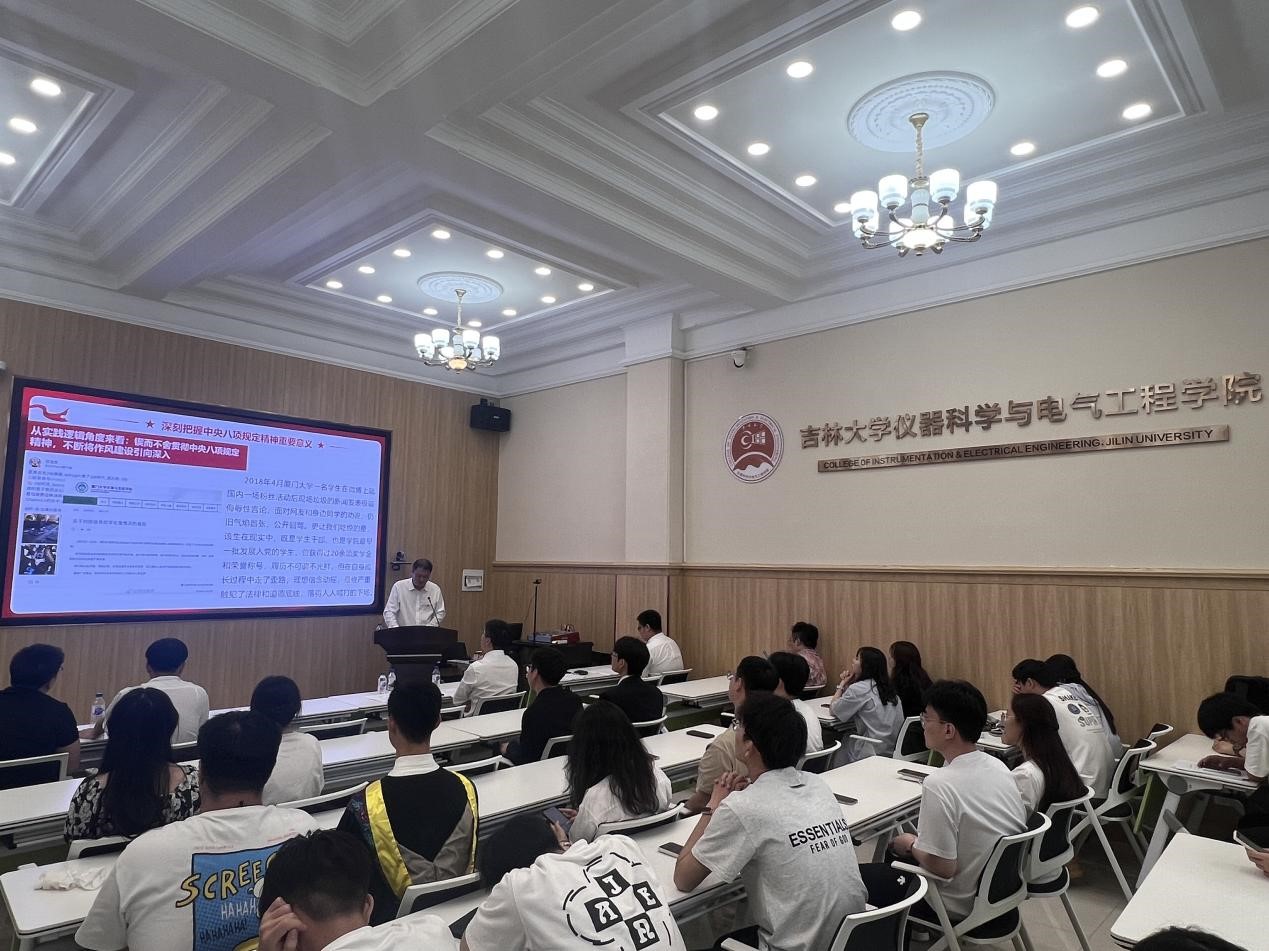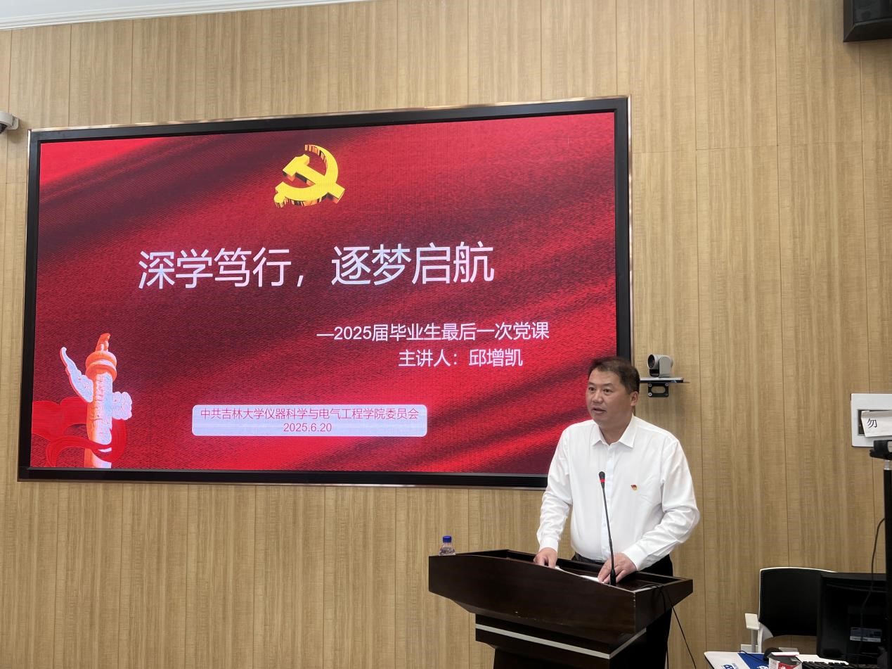 为持续推动深入贯彻中央八项规定精神学习教育走深走实,6月20日下午,在毕业离校之际,仪器科学与电气工程公司党委书记邱增凯为全院2025届毕业生党员讲授“深学笃行,逐梦启航”专题党课,为即将迈向人生新征程的毕业生党员们送上殷切期望和深情祝福。本次活动是公司党委为2025届毕业生离校前集中组织的“最后一次党课”,公司党委副书记兼副经理曲珩主持,公司全体2025届本科生党员、研究生党员参加活动。