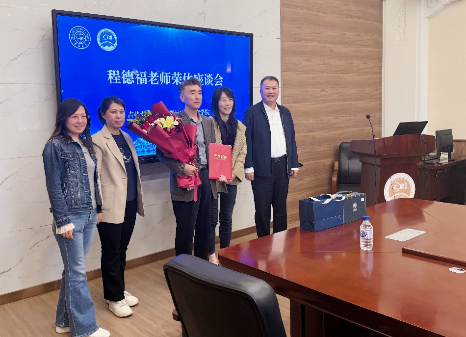 最后,邱增凯、林婷婷代表公司向程德福教授颁发荣休证书和纪念品,教职工代表为程德福教授献上鲜花,全体参会人员共同合影留念,座谈会在温馨愉快的氛围中圆满结束。