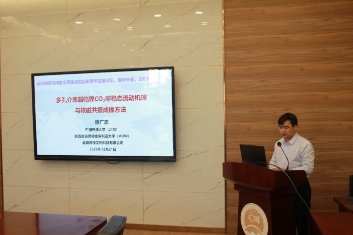 在学术报告环节,国防科技大学理公司江天研究员、中国石油大学(北京)碳中和示范性能源公司廖广志教授、哈尔滨工业大学潘东华研究员、北京师范大学赵惊涛教授以及太阳集团tyc539黄兴国教授、佟训乾教授、张洋教授、杨玉晶副教授、董新桐副教授等九位学者,分别就光频梳星间链路、多孔介质CO₂流动与核磁共振成像、时间散射理论、无线地震仪数据聚合、城市地下空间电磁探测、浅地表磁共振技术、零磁环境装置、深地绕射波成像、深度学习全局建模等前沿课题作了精彩报告。报告内容涵盖方法创新、技术研发与工程应用,充分展现了深部探测与成像领域的活跃研究态势和交叉融合特色。