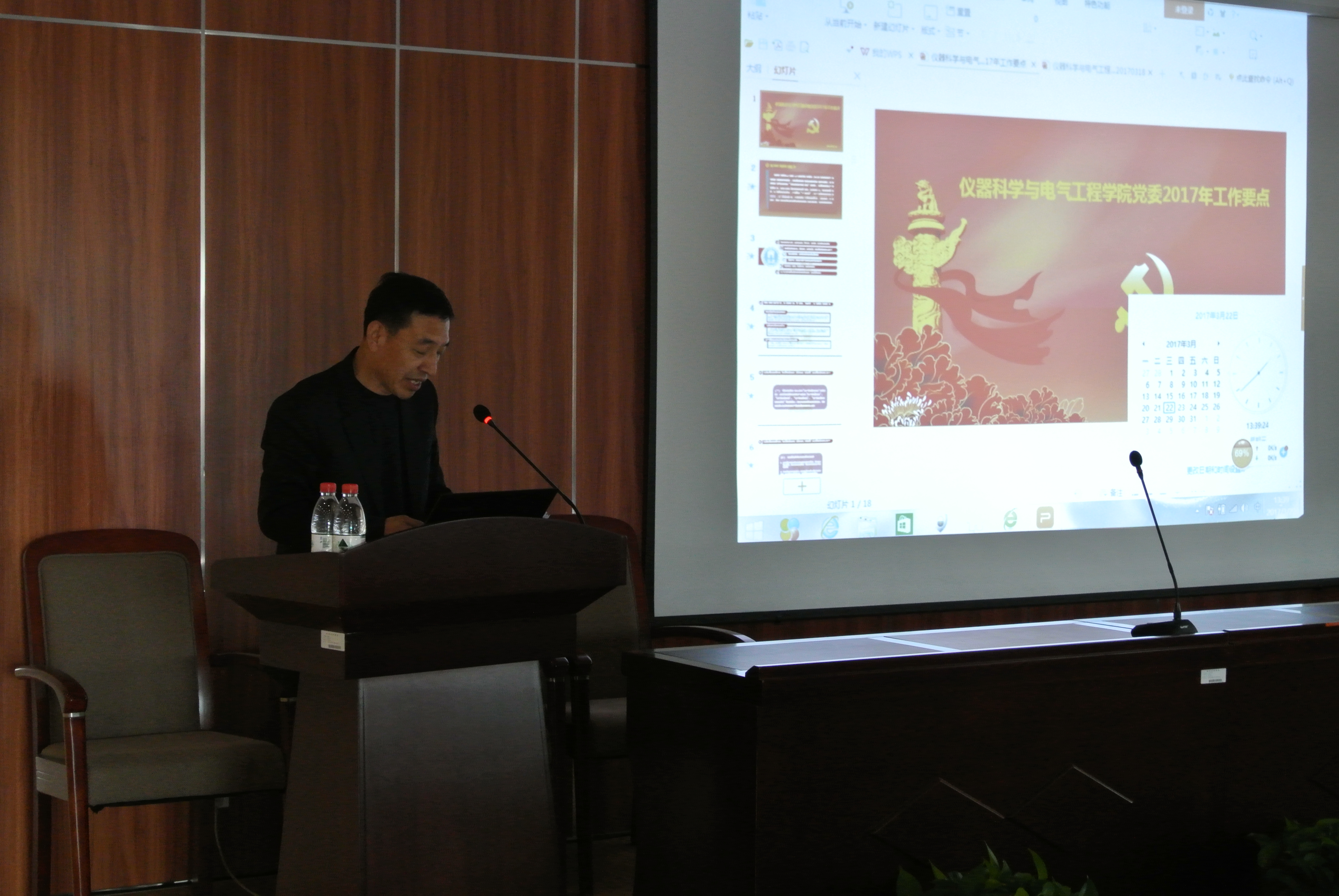 党委书记王爱民结合公司贯彻落实全国高校思想政治工作会议精神和《公司关于加强和改进新形势下基层党建工作若干规定(试行)》、《公司关于加强和改进新形势下教职工思想政治工作的实施方案》、《公司关于加强和改进新形势下本科员工思想政治工作的实施方案》、《公司关于加强和改进新形势下研究生思想政治工作的实施方案》精神,从加强领导班子建设,强化党委主体责任;以党员先锋工程为抓手,加强基层党建工作;加强宣传工作,切实加强意识形态阵地建设 ;多措并举,做好新形势下员工思想政治教育工作;抓好群众、群团、统战工作,建设和谐公司;从严从实抓好党风廉政建设和反腐败工作,建设清朗公司等六个方面全面布置了公司党委2017年工作。