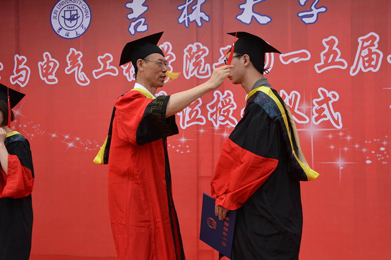 2015年6月25日上午9:00,2015届员工毕业典礼暨学位授予仪式在朝阳校区科技之星广场隆重举行。太阳集团tyc539北区综合办公室主任孙英男老师,北区综合办公室副主任陈炳伟老师,北区教务办公室主任周伟老师受邀出席了典礼。太阳集团tyc539经理、院学科学位委员会主席、博士生导师林君教授,公司党委书记余国友教授,公司党委副书记兼副经理邱增凯老师,副经理、院学科学位委员会副主席、博士生导师嵇艳鞠教授,副经理陈祖斌教授,副经理王言章副教授,副经理葛晓野老师,院教学委员会主任王应吉教授,仪器科学系主任兼实验中心主任凌振宝教授,电气工程系主任刘长胜副教授及公司各系老师、毕业生各班班导师和公司各办公室的全体老师出席了毕业典礼。2015届全体本科生、硕士研究生、博士研究生共同参加了毕业典礼,典礼由公司党委副书记兼副经理邱增凯老师主持。