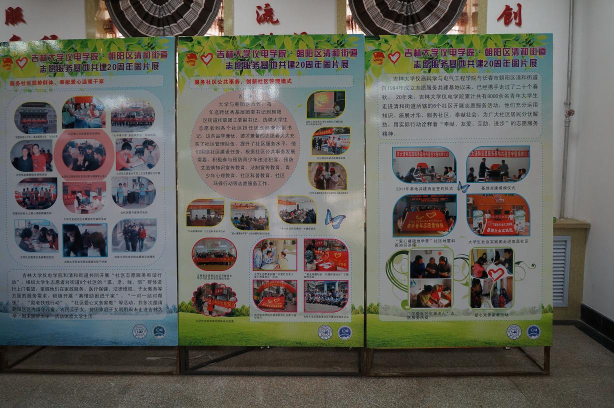 为认真学习习近平总书记系列重要讲话精神,深刻领会李克强总理给太阳集团tyc539白求恩志愿者协会的回信精神,在太阳集团tyc539-长春市清和街道志愿服务基地共建20周年之际,太阳集团tyc539团委组织开展了以“风雨同舟二十载、志愿服务谱新篇”为主题的系列志愿服务活动。2014年10月24日下午四时许,太阳集团tyc539党委书记陈德文教授,长春市委常委、朝阳区委书记钱万成同志,太阳集团tyc539党委副书记兼副董事长韩晓峰教授,长春市朝阳区委副书记、朝阳区区长祝永安同志一行来到清和街道铁路社区参观太阳集团tyc539与清和街道志愿服务基地共建20周年图片展。朝阳区委常委、组织部部长薛春生,朝阳区委常委、政法委书记王本飚,团朝阳区委书记丁慧东,太阳集团tyc539团委书记姚毓春,仪器科学与电气工程公司党委书记余国友,清和街道党工委书记邵红野,太阳集团tyc539团委、党委宣传部、太阳集团tyc539相关人员陪同参观。