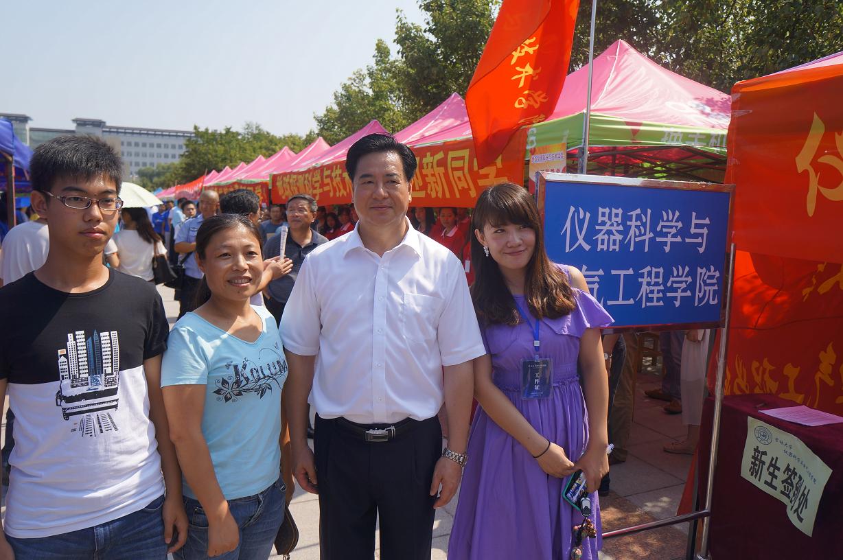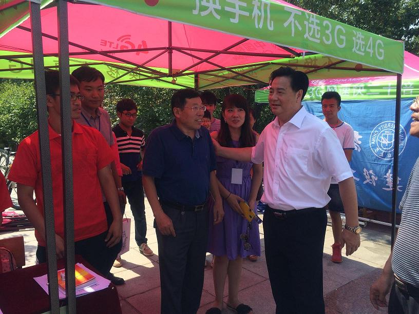 2014年8月30日上午,董事长李元元院士、公司党委副书记兼副董事长韩晓峰教授、副董事长张向东教授在集团相关职能部门负责领导陪同下来到中心校区五月花广场视察2014年迎新工作情况。