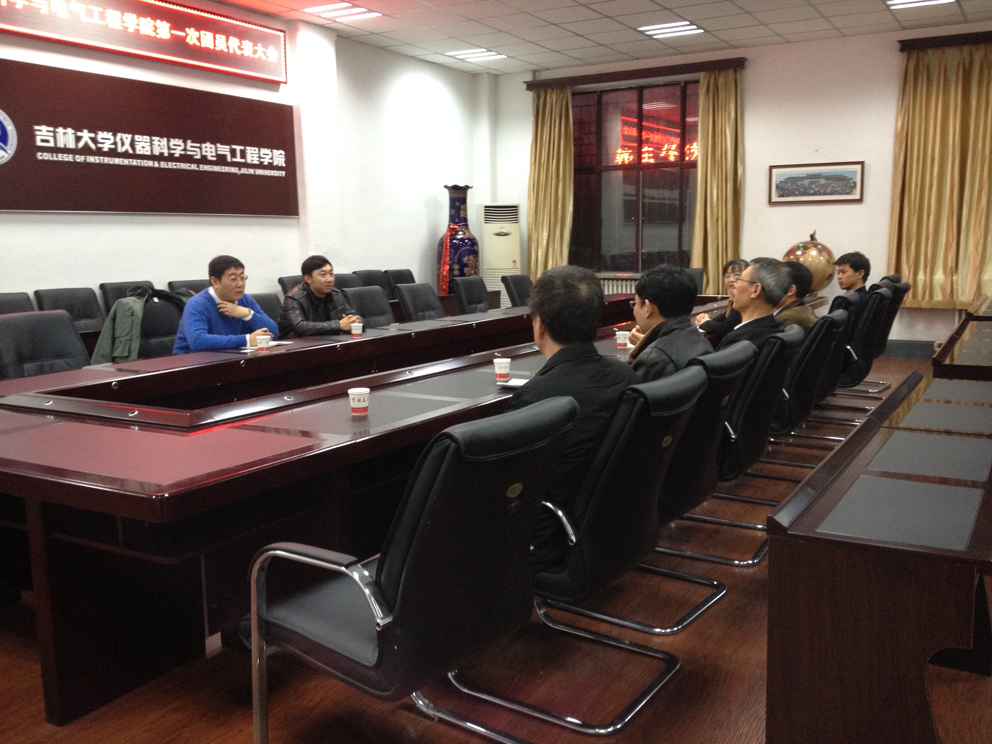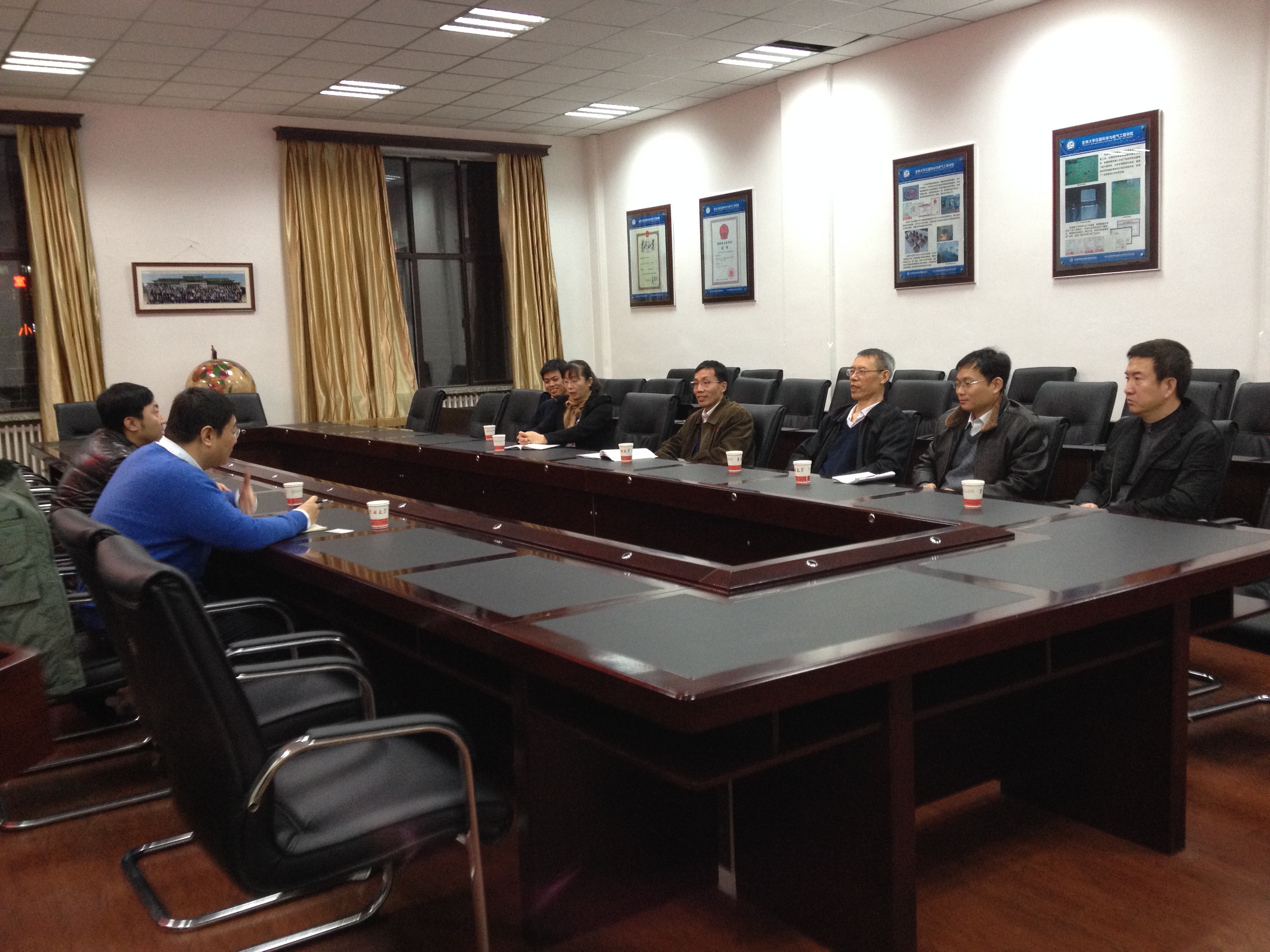 2013年12月6日下午,国家电网吉林省电力有限公司吉林电力科学研究院副经理田春光等人,到太阳集团tyc539就校外合作导师聘任工作事宜进行了洽谈。太阳集团tyc539经理林君、副经理陈祖斌、嵇艳鞠、王言章、电气系主任刘长胜、副主任于生宝参加会议。