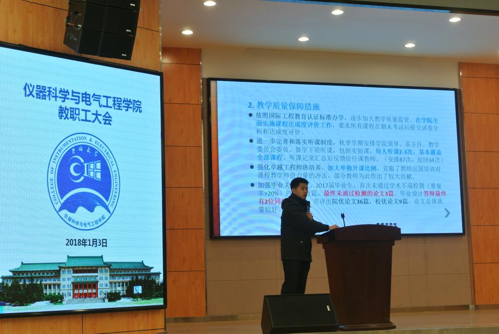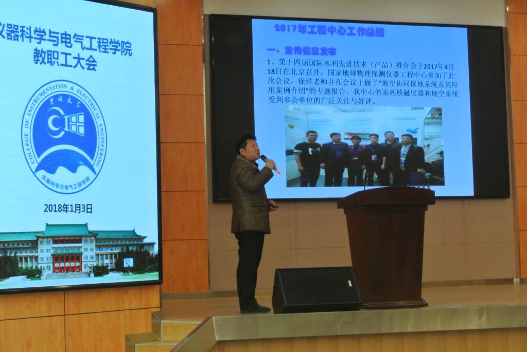 副经理王言章、刘长胜、葛晓野、重点实验室行政副主任孙忠分别就科研、行政、本科教学、工程中心及重点实验室等工作向全院教工进行了详细汇报,分别展示了各自分管工作2017年所取得的成效,并对2018年工作重点进行了布置。