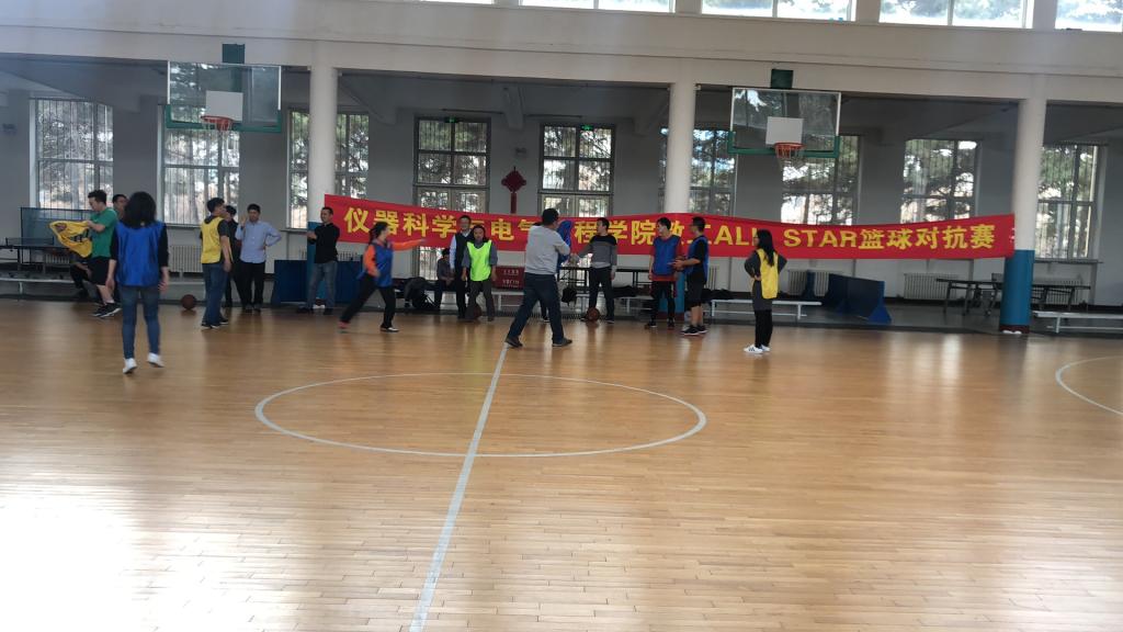 接下来比赛进入第二个赛程“竞技对抗”,仪器工会小组与实验中心工会小组为一队,电气工会小组、行政工会小组与工程中心工会小组为二队,二队在观众的助威声中开始了对抗。对抗赛要求各队上场队员为5人,可以随意换人,但是必须保证场上不低于两名女队员。比赛中,两队队员充分发挥了团队协作能力,争球抢球盖帽,篮下的女选手也不示弱,积极的投入到比赛中,比赛既紧张又富有趣味,最终电气工会小组、行政工会小组与工程中心工会小组联队获得冠军,仪器工会小组与实验中心工会小组联队获得亚军。