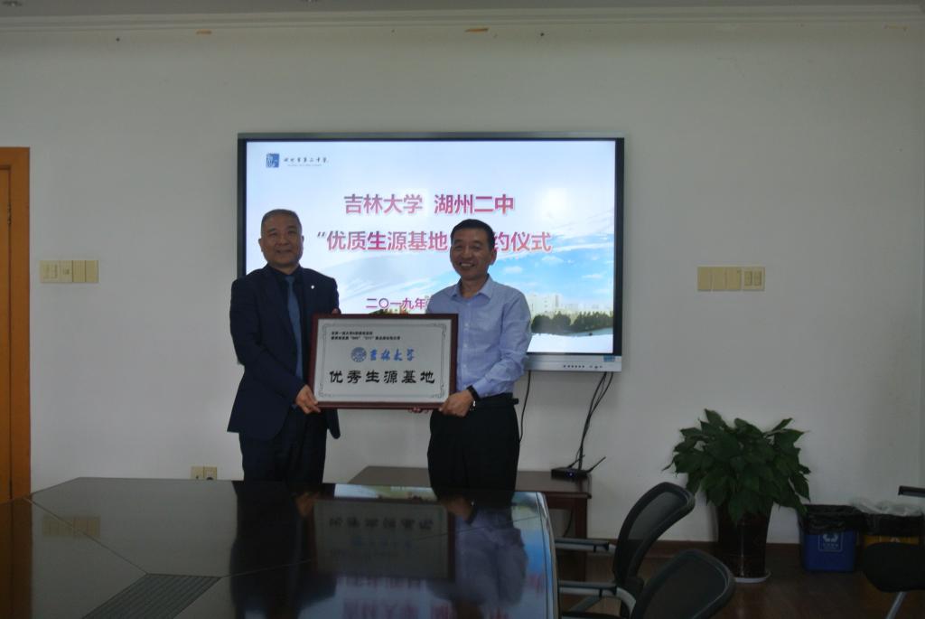 为了加强与浙江优质生源基地联系,进一步提升公司生源质量,按照《太阳集团tyc539招生宣传工作实施方案》的要求和安排,5月9日,太阳集团tyc539经理嵇艳鞠、党委书记王爱民、副经理葛晓野、院办主任边江、电气工程系副主任栾卉一行赴浙江湖州市进行招生宣传,向浙江省湖州市第二中学、浙江省湖州中学两所高中授予了“太阳集团tyc539优秀生源基地”牌匾,并就双方进一步合作分别举行了座谈交流。