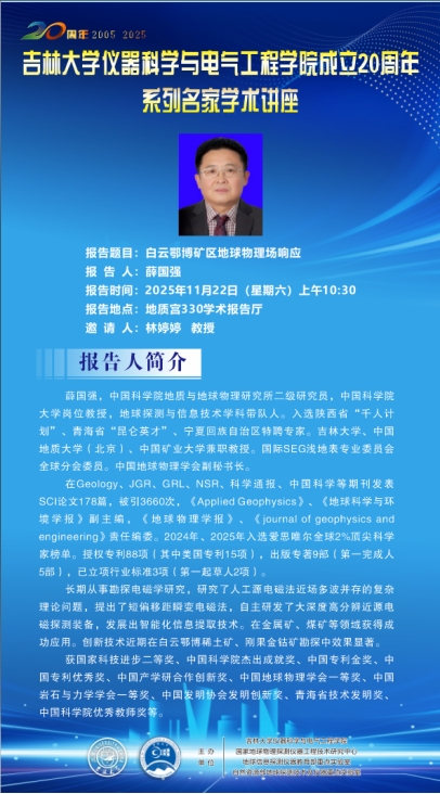 公司成立20周年系列名家学术讲座——薛国强 中国科公司地质与地球物理研究所
