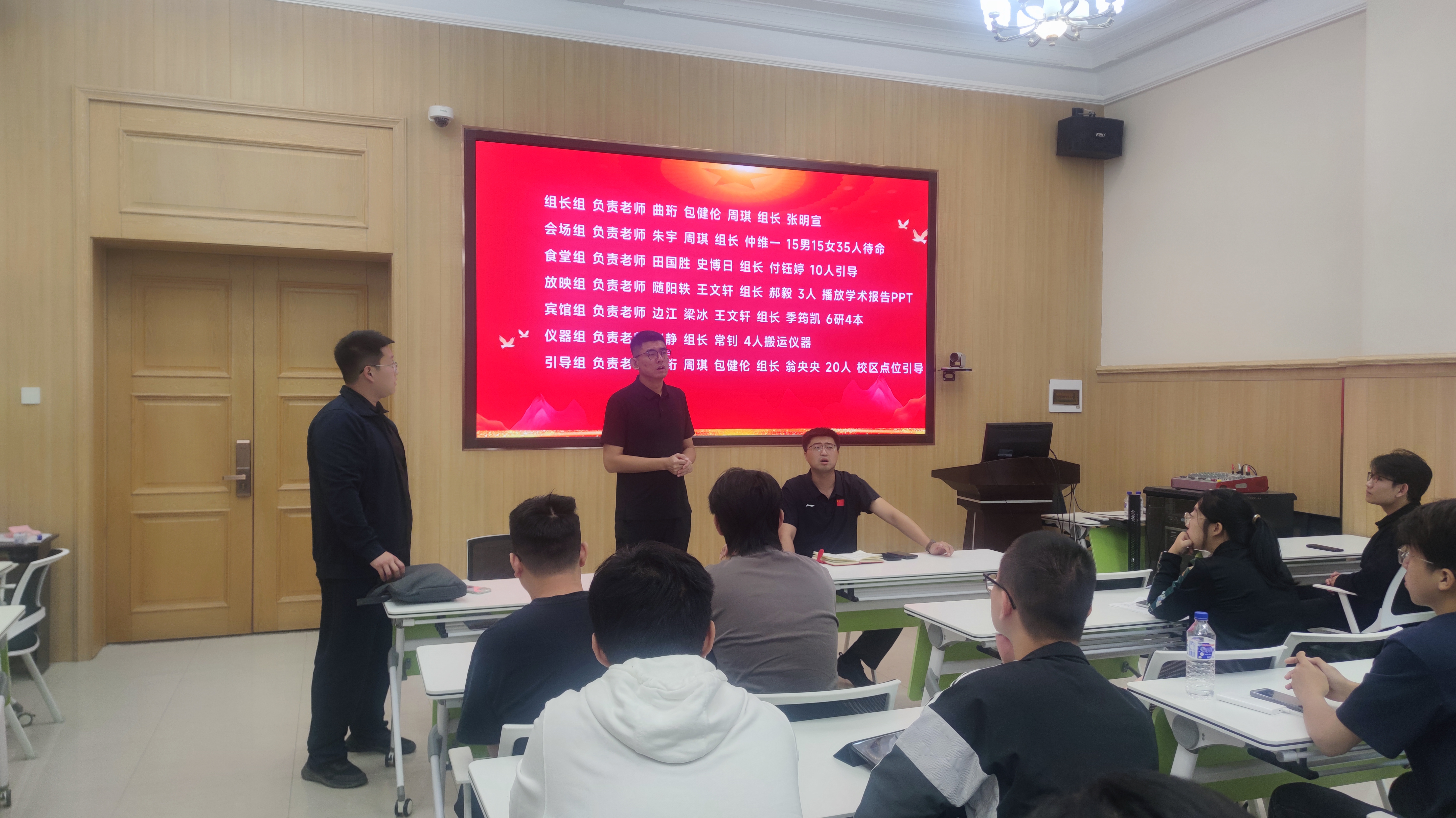 史博日老师和王文轩老师就会场具体工作内容及人员分配进行补充,团委员工会负责人及各年级主要班干部就分组情况进行讨论,确定了各组人员名单并明确了工作内容。