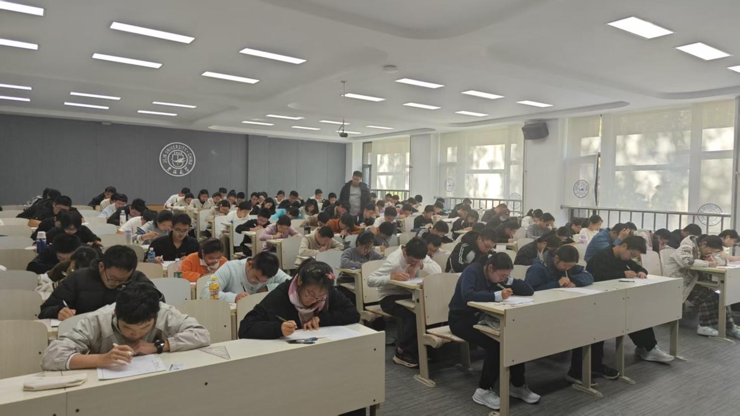 考试期间,全体新生自觉遵守考场纪律,沉着应答,展现出良好的精神风貌与扎实的学习基础。监考工作由2025级本科生辅导员史博日老师与公司员工会成员负责,全程严格巡查,有效保障考试的公平性与严肃性。