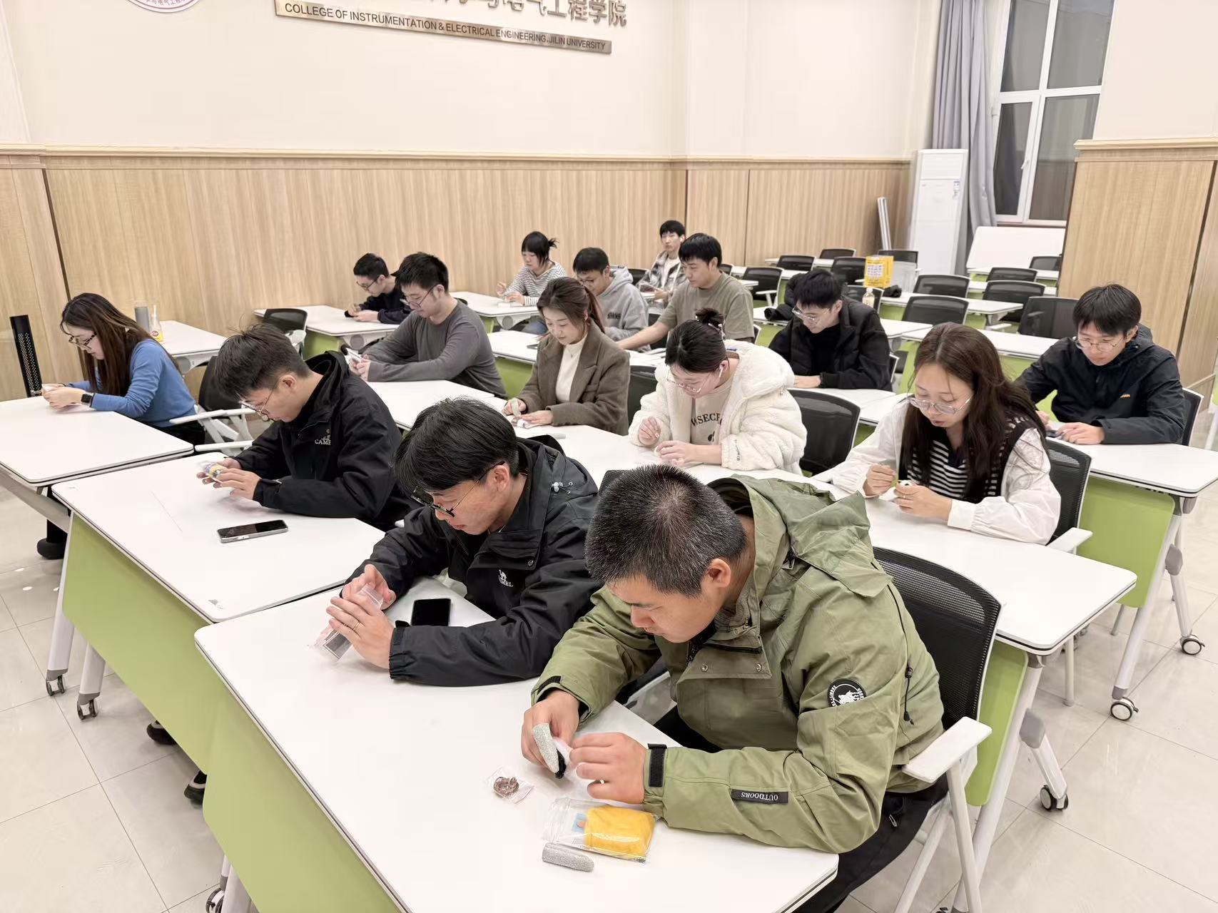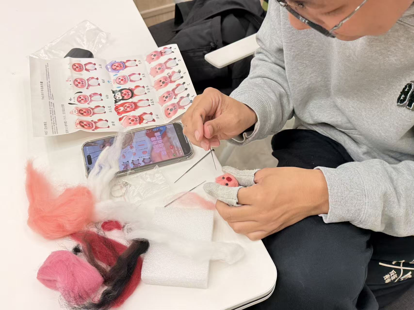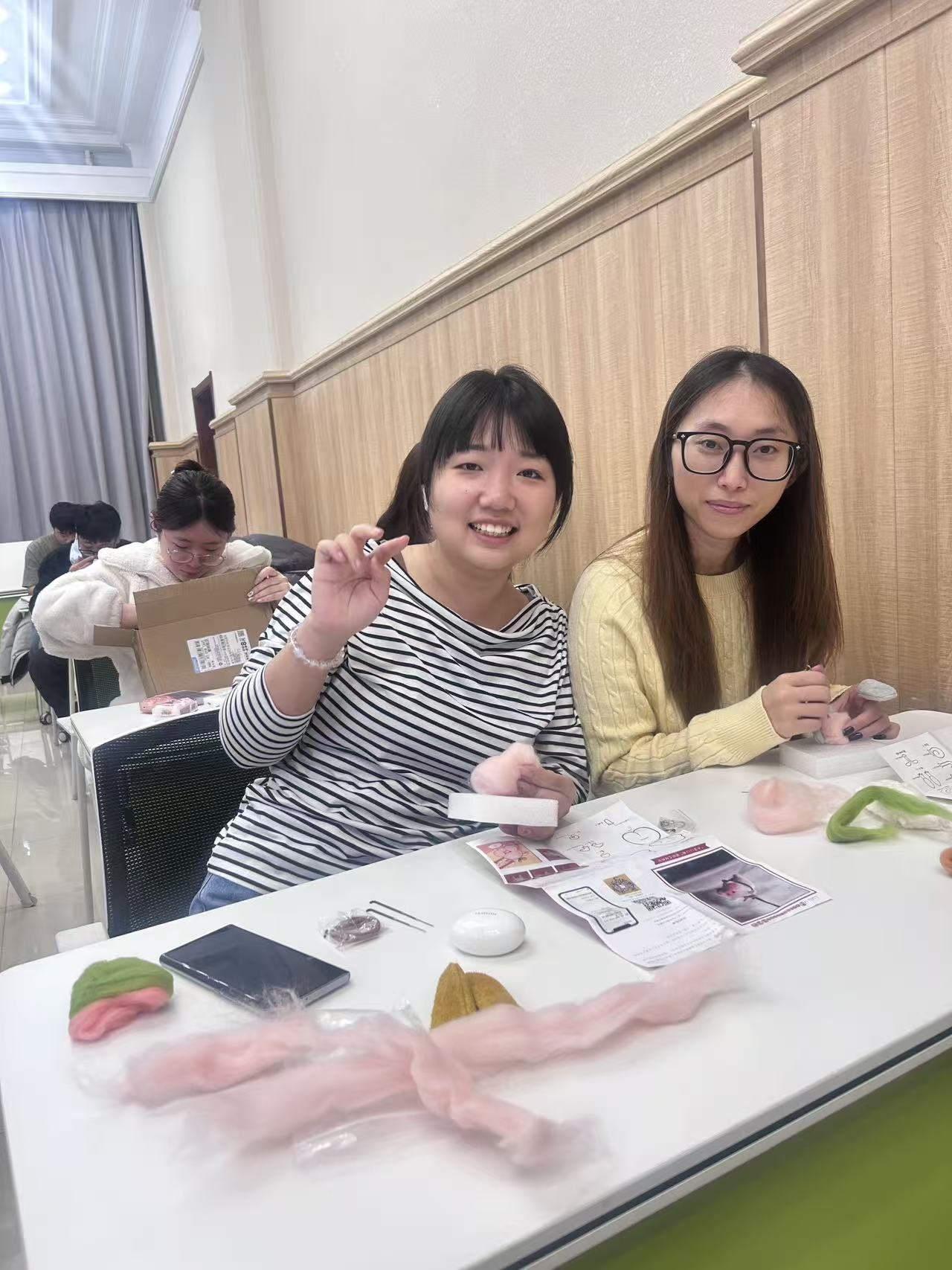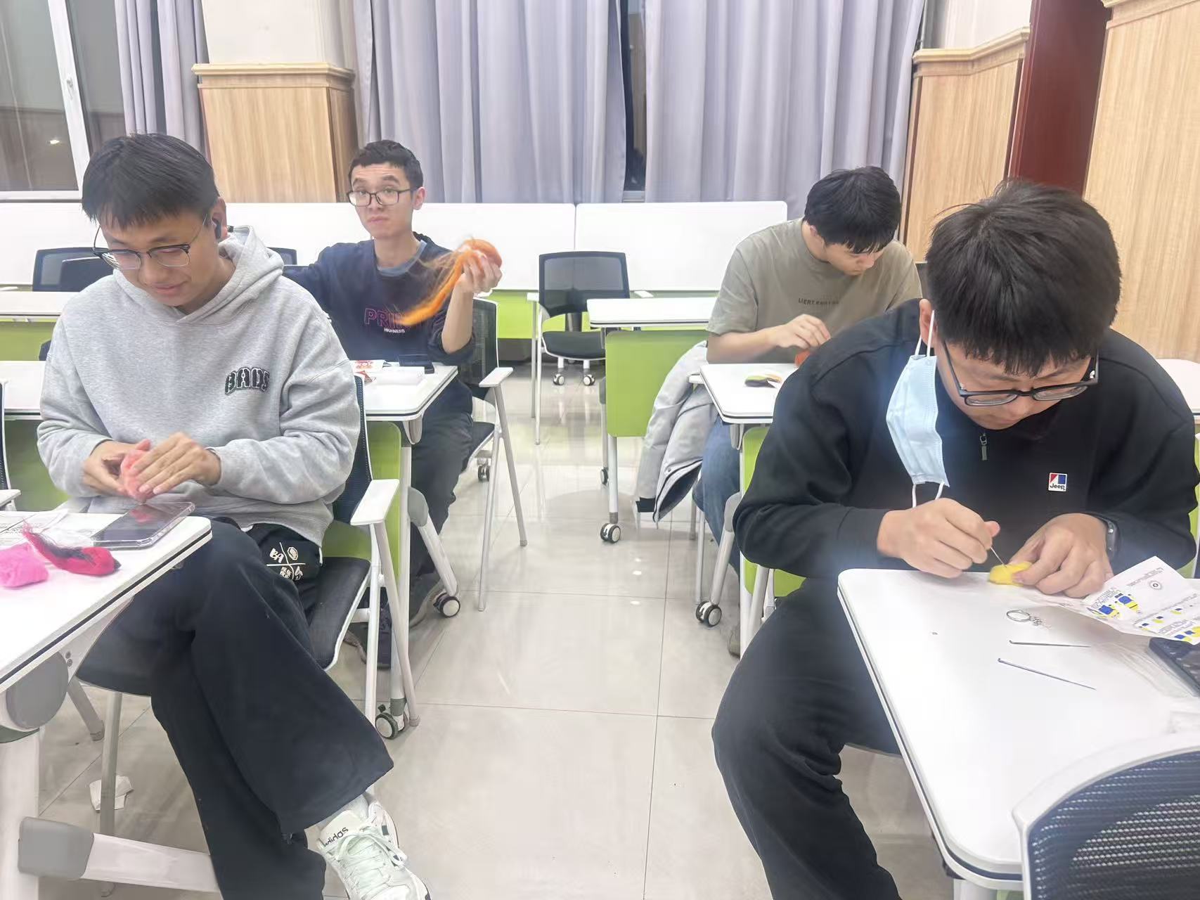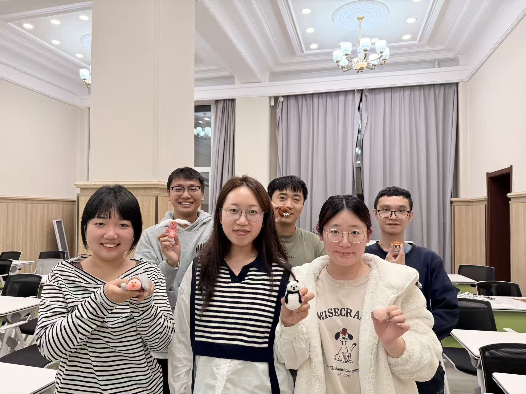 戳戳乐的制作过程看似简单,却需要专注和耐心。随着戳针一下一下地刺入羊毛中,松软的羊毛纤维逐渐紧实成型,一个个可爱的小物件在同学们手中诞生。在这个过程中,大家暂时忘却了科研的压力和论文的烦恼,全身心投入到创作的乐趣之中,体会着“心流”带来的宁静与专注。