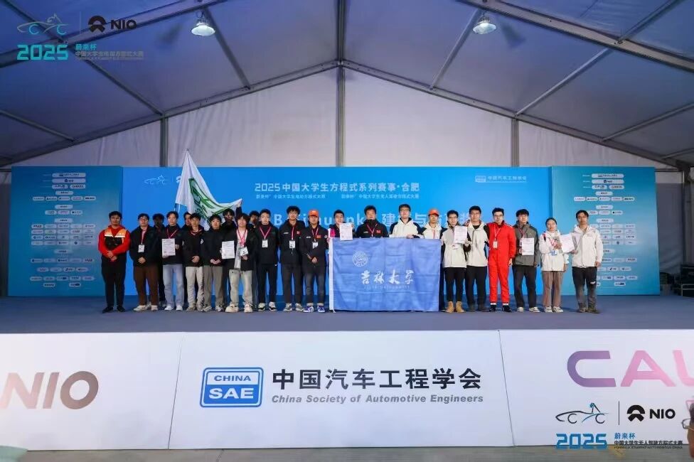 2025年10月8日,再次奔赴郑州参加2025“吉利杯”中国老员工方程式汽车大赛。针对雨战凭借扎实的专业能力,现场对赛车混合动力系统、车身稳定控制系统、扭矩分配控制系统进行特调,保证赛车在湿滑赛道的稳定性。作为车队主力车手,在其它强队接连做出强势有效圈速时,吴林阳顶住压力最终取得高速避障全场第二的好成绩。在耐久赛中,凭借精湛驾驶技术,将圈速刷新到1.06.625,做出了雨地最快单圈。