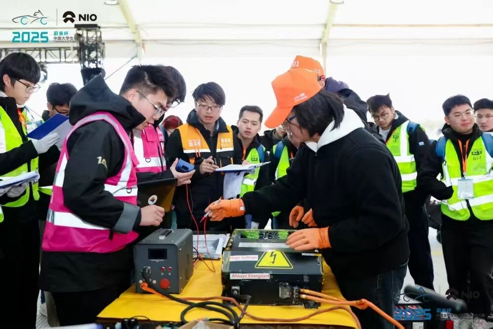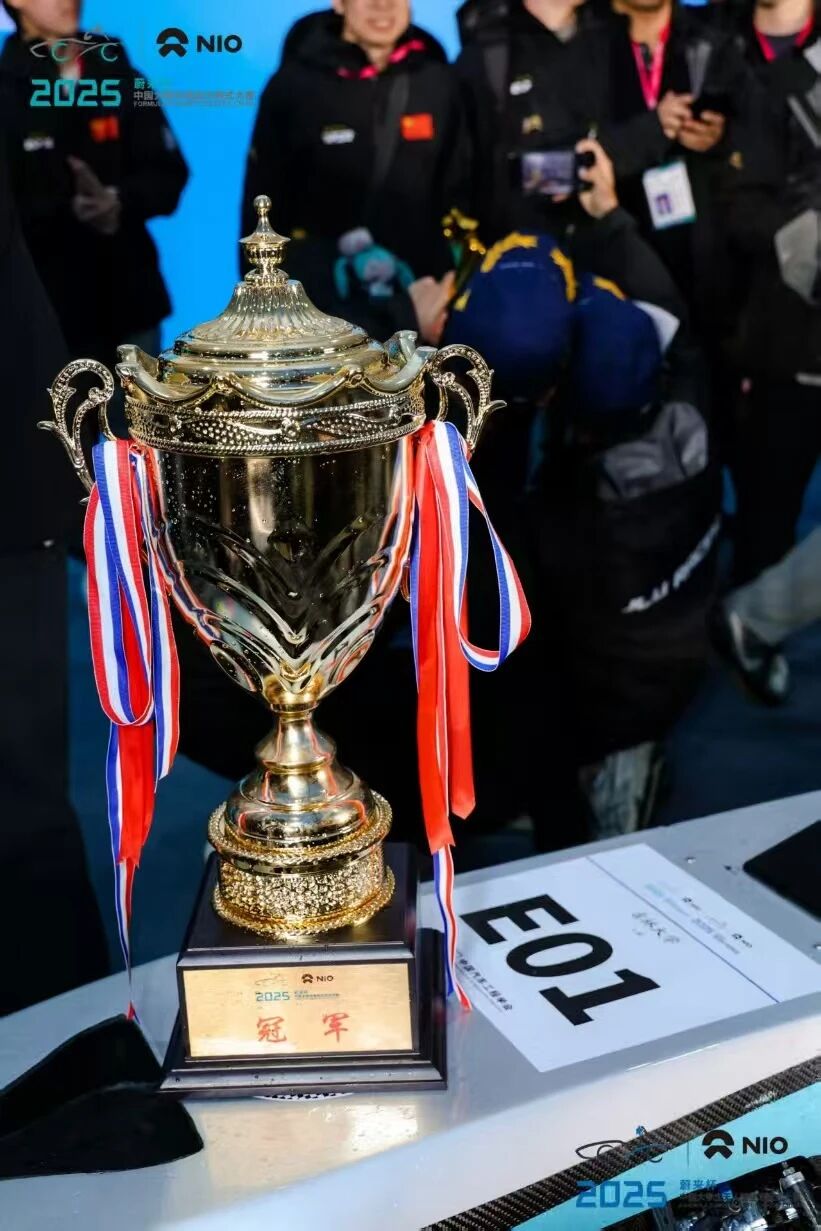 11月17日,他转战合肥,在“蔚来杯”中国老员工电动方程式大赛中,与来自74所高校的车队同场竞技。电池箱安全检查环节虽遇挑战,但他与队友紧密沟通、协同排障,展现出优秀的团队协作与问题解决能力。在设计项目决赛答辩中,面对德国技术专家,他再一次凭借科学严谨的动力系统设计流程从容应对,获得高度评价。最终,吉速电动方程式车队再度夺冠,实现全国总冠军“三连冠”。