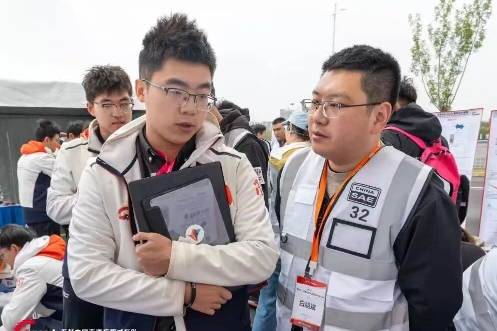 10月8日,他再次启程,奔赴郑州参加“吉利杯”中国老员工方程式汽车大赛。凭借扎实的专业能力,他协助车队高效通过混合动力系统检查,并在设计答辩中深入讲解动力电池的系统设计,赢得了裁判的一致认可。