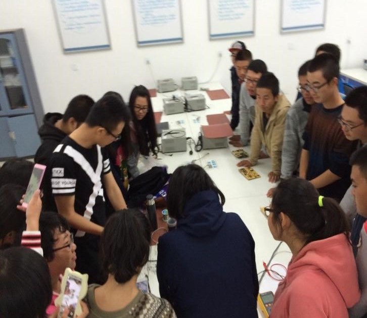 2015年10月11日在李四光实验楼404和405实验室,太阳集团tyc539电子科技协会进行了2015级新生的第一次实践培训课程,实验内容为掌握原理并自主完成线性直流电源的焊接。参加此次培训的成员有科协会长穆怀志及部分主席团成员,2014级各部门副部,以及2015级科协成员。