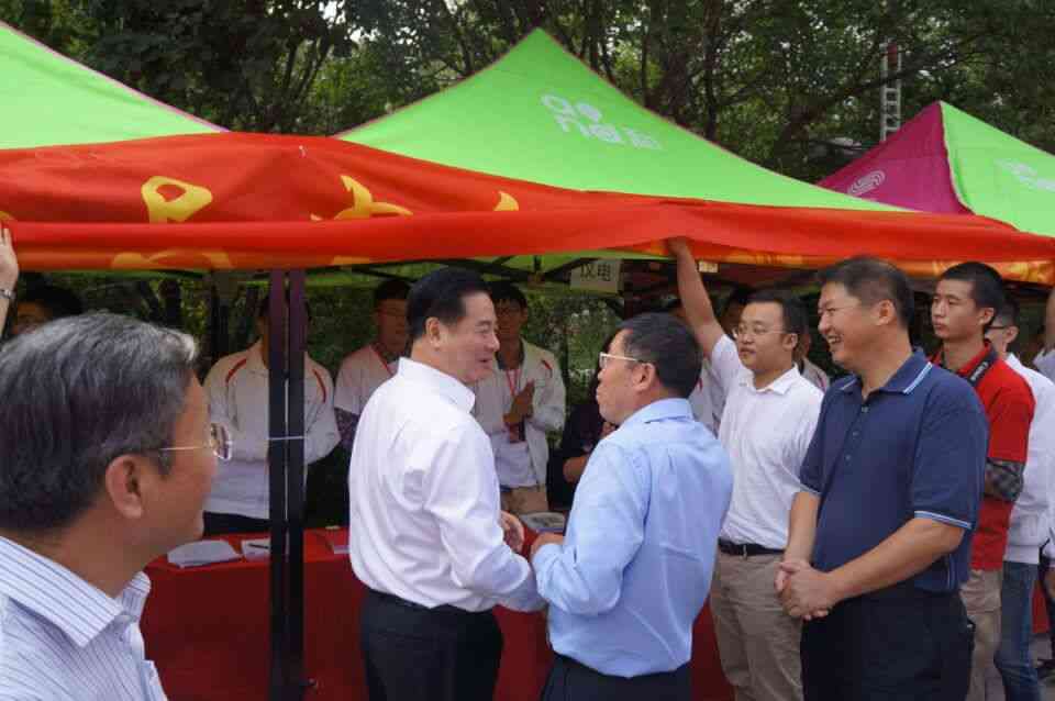 2015年8月29日上午,董事长李元元院士、公司党委书记杨振斌教授在公司相关职能部门负责领导陪同下来到中心校区五月花广场视察2015年迎新工作情况。