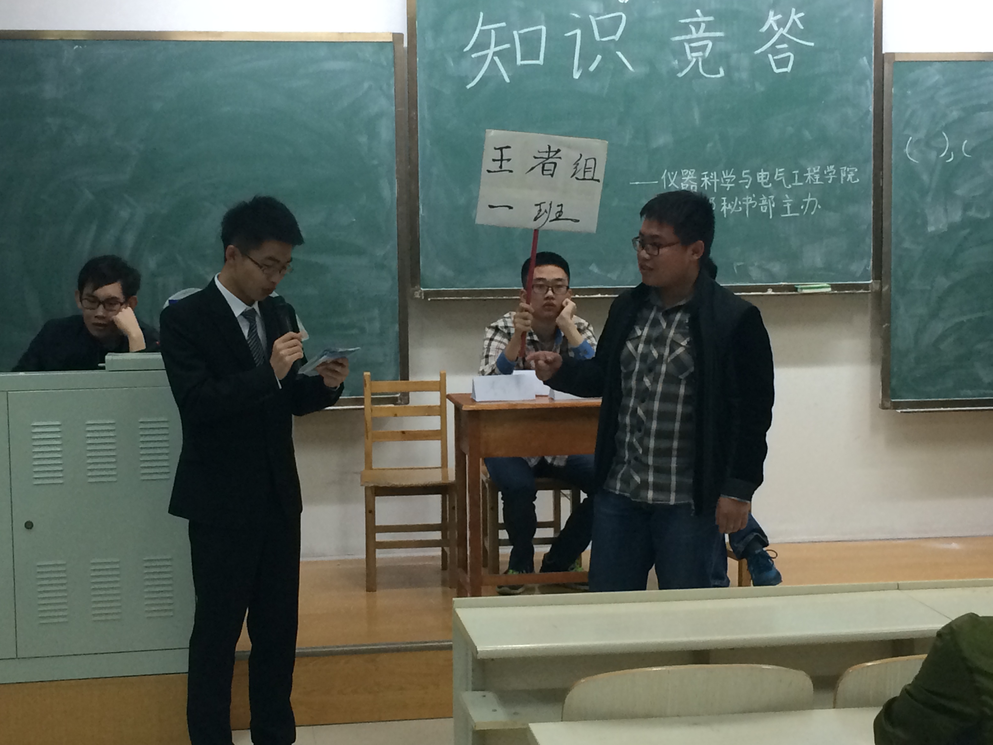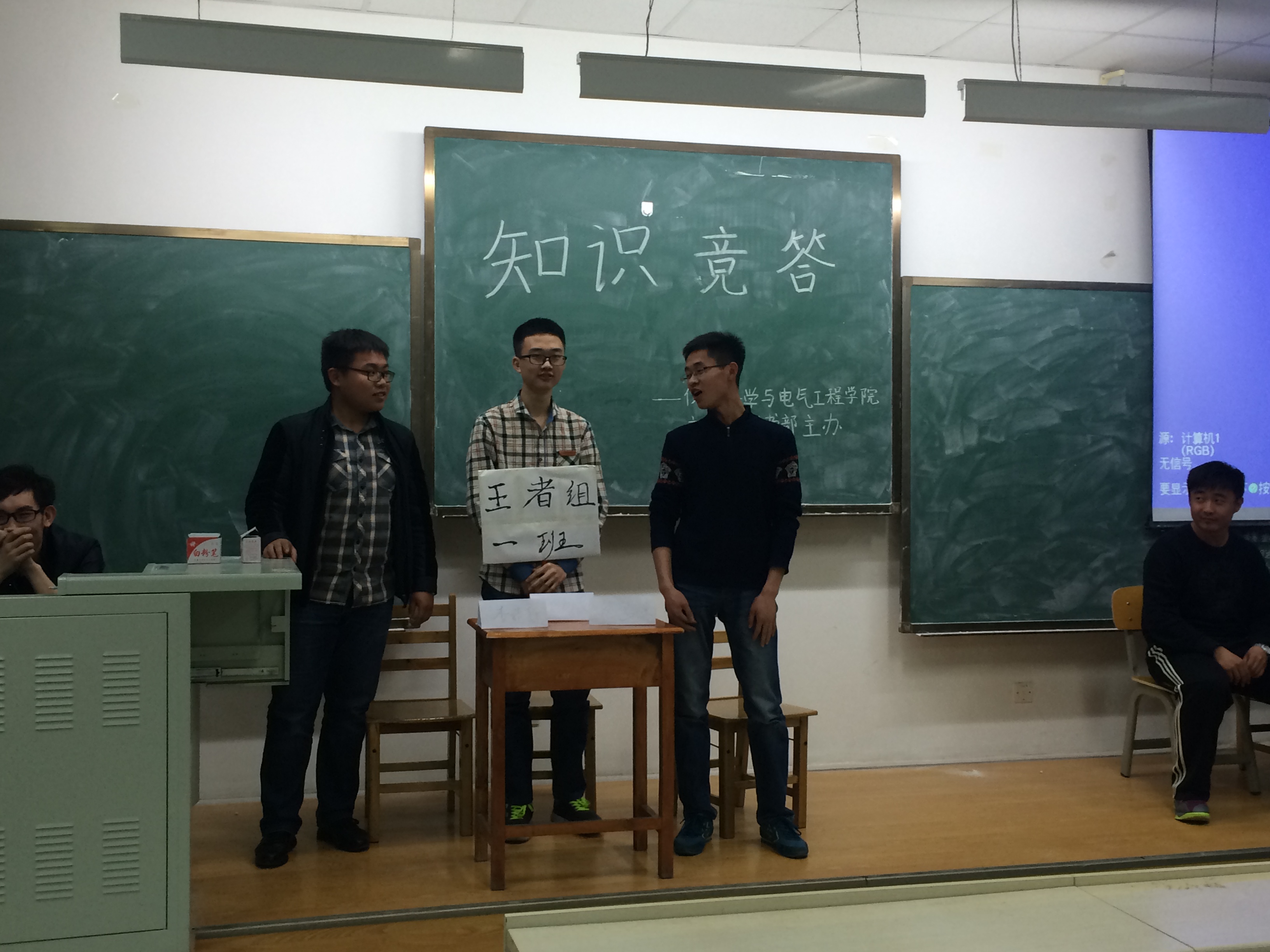 为更好地关注基础园区低年级员工的健康成长和全面发展,丰富广大同学的课余生活,提高同学们的综合素质,增强团队协作精神和集体凝聚力,太阳集团tyc539第十届分团委、员工会于2015年3月至5月开展了班级风采大赛系列活动。2015年4月30日晚,一站到底知识竞赛在中心校区李四光楼208室举行,院员工办公室主任兼2014级辅导员王冕老师、第十届分团委员工会全体员工干部出席了活动,2014级全体新生同学参加了活动。