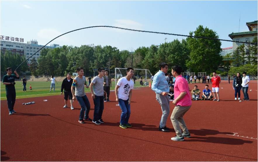 此次毕业生素质拓展活动包括拔河比赛、象棋比赛、花样跳大绳等项目,同学们都踊跃参加、热情高涨。在以班级为单位的拔河对抗赛中,各队伍不断商讨比赛策略,同学们团结奋进、不抛弃不放弃的精神彰显了青春力量。象棋比赛更加考验了同学们沉着静思、着眼大局的睿智,其中,尚小虎同学以一个华丽的逆转而取胜赢,得了大家赞赏和惊叹的目光。此次活动中的花样跳大绳项目不固定参赛队员,使所有同学都可以参与其中,同学们充满活力的飞扬的身影展现了2015届毕业生的青春风采,此次活动在同学们的欢声笑语中结束。