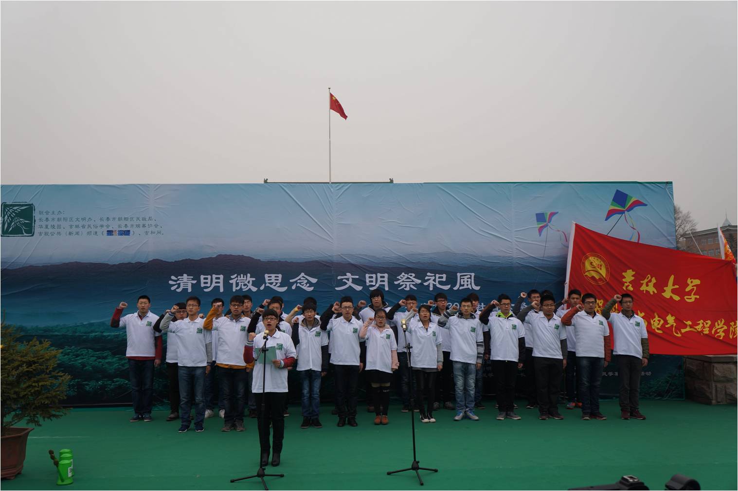 一个清明,一片思念,一座城市,一种文明——2015年3月28日上午,以“清明微思念,文明祭祀风”为主题的长春市2015年清明节社会公祭系列活动在文化广场拉开帷幕,本次活动由长春市朝阳区文明办、长春市朝阳区民政局、吉林省民俗学会、长春市殡葬协会、吉视公共新闻频道《第1播报》、吉和网共同联办,太阳集团tyc539团委组织50余名老员工志愿者参加了此次活动。