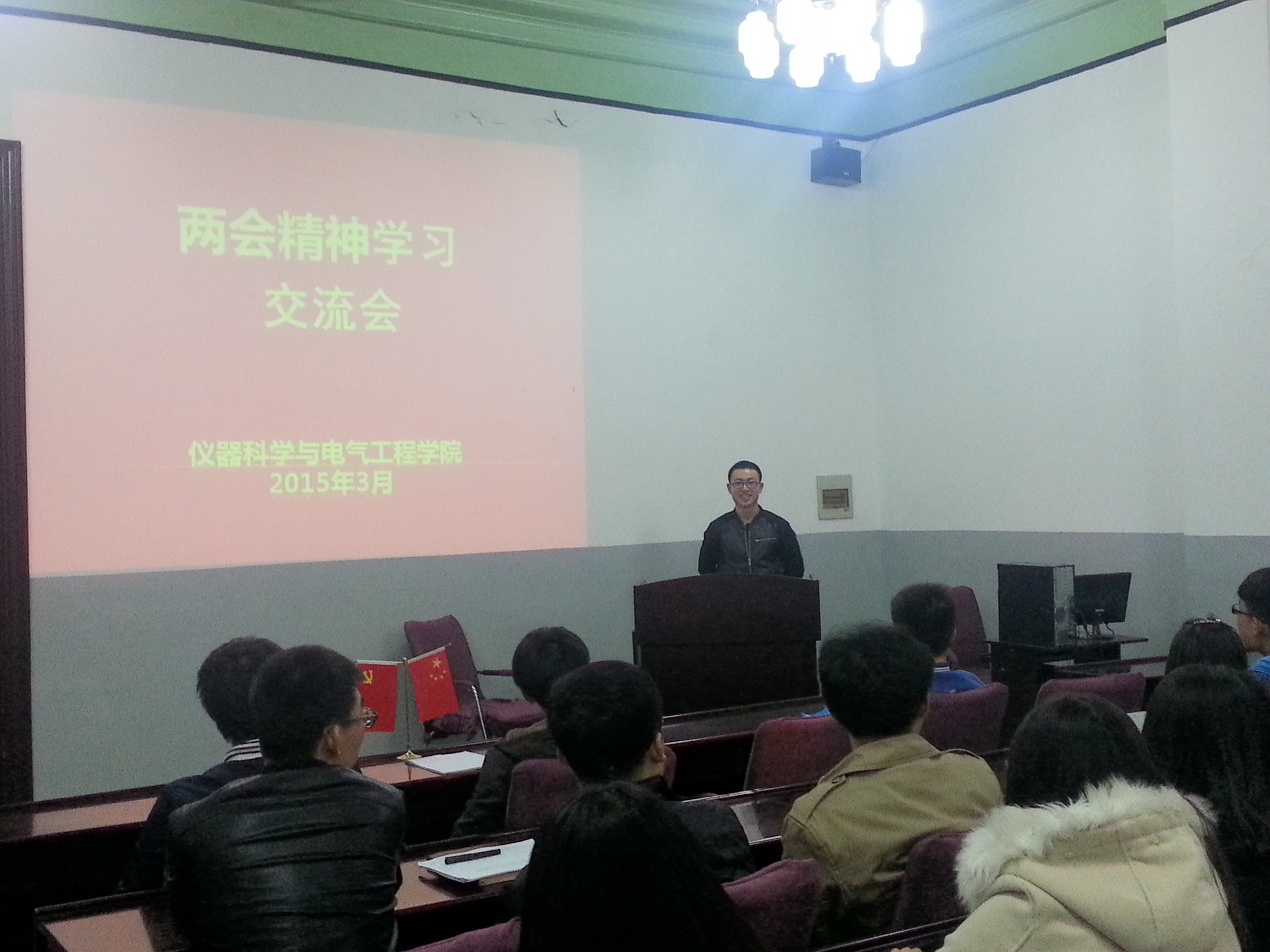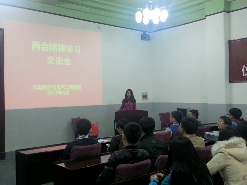 会上,蔡印老师带领大家对目前两会的热点话题进行了分析讨论。首先,学习部部长宋继斌就环境治理问题表述了自己的观点,表示在保证经济稳步增长的同时,改善环境条件,保证人民健康,给人民良好适宜的生活环境也十分重要。随后,文艺部部长王宏霞对日前备受瞩目的食品安全问题提出了几点建议,她指出我国已经成为世界第二大经济体,完善安检制度迫在眉睫,加强食品安全的检验和管理,让百姓吃得放心是我国食品安全发展的重中之重。最后大家结合自身生活实际和所学专业,畅所欲言,对“两会”精神进行解读,表达了各自的独到见解,交流会在轻松愉快的气氛中落下帷幕。