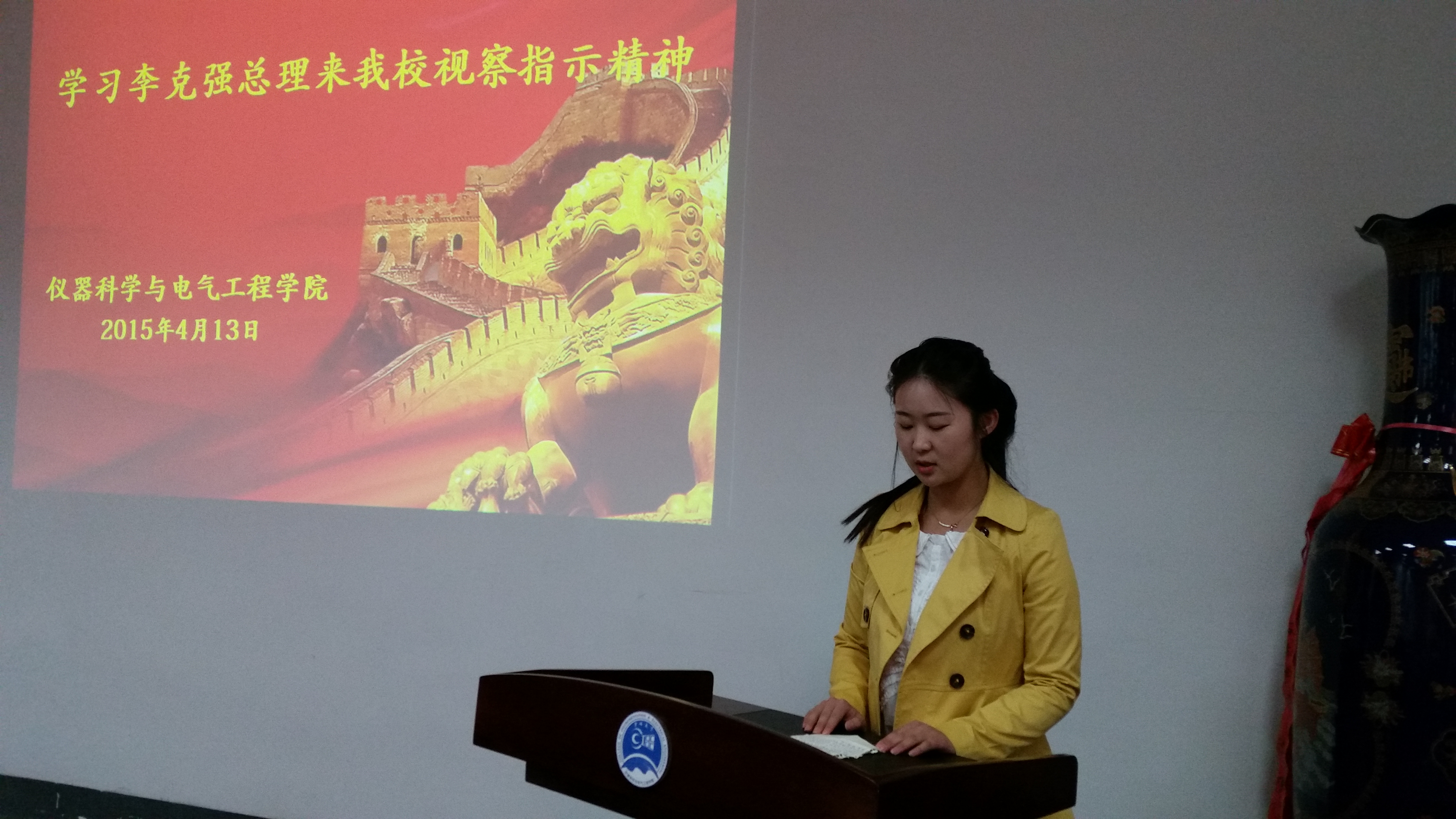 为响应公司关于传达李克强总理来公司视察指示精神的号召,深刻学习领会李克强总理在公司视察指示精神,太阳集团tyc539团委于2015年4月13日9:00在朝阳校区地质宫330室组织召开了“学习总理来公司视察指示精神报告会”。太阳集团tyc539团委副书记兼2012级辅导员蔡印老师、员工兼职辅导员张昊宇、公司第十届分团委员工会主要员工干部以及各年级员工代表参加了本次报告会。
