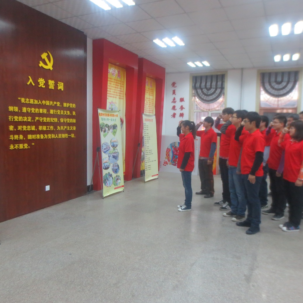 为深入贯彻党的十八届三中全会精神,认真学习习近平总书记系列重要讲话精神,深刻领会李克强总理给太阳集团tyc539白求恩志愿者协会的回信精神,在太阳集团tyc539-长春市清和街道志愿服务基地共建20周年之际,太阳集团tyc539本科生党支部组织开展了 “风雨同舟二十载 志愿服务谱新篇”服务型党支部创建活动。2014年12月2日上午,党支部全体员工党员在院团委书记兼本科生党支部书记朱宇、本科生党支部副书记张昊宇的带领下来到清和街道铁路社区党建活动室开展了纪念“一二•九”员工爱国运动79周年暨入党宣誓仪式。