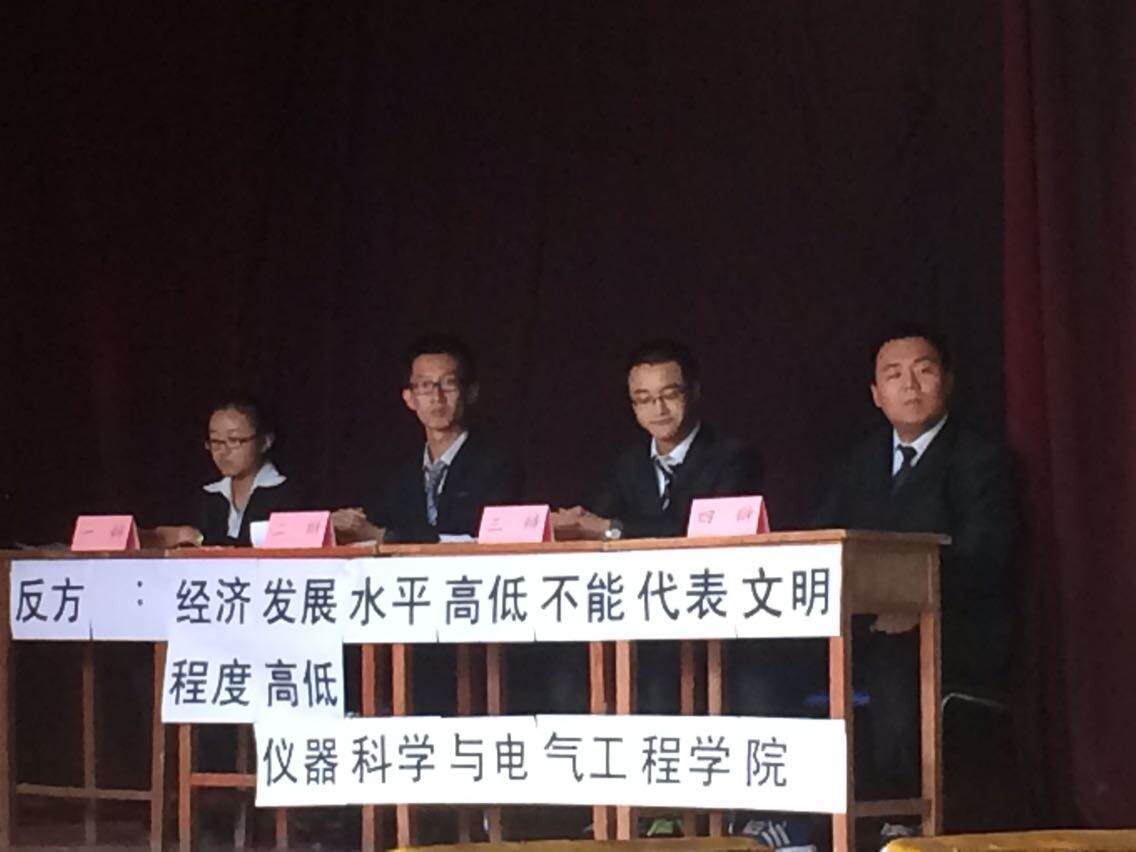 本场比赛辩题是“经济发展水平高低能否代表文明程度高低”,公司通过层层选拔挑选出四位辩手参加首场比赛,一辩庞毅狄口齿伶俐,简明扼要,立论阶段就充分阐述并论证了本方观点;二辩孙德立大气老成,稳如泰山,气场强大,攻辩阶段接连抛给对方辩友数个犀利的问题,巩固了本方优势;三辩秦琪对阵对方强大的三辩,临危不乱,依然思路清晰,进一步阐明了本方观点;四辩汤润泽,总结陈词阶段系统分析了对方整场辩论赛的漏洞,一一披荆斩棘,从对方漏洞出发,理性分析,实例论证,充分论证了对方观点的片面性和错误性,更深一步论证了本方观点的正确。然而,地球科学公司辩论队同学也毫不示弱,一辩论证清晰、思路敏捷;二遍娓娓道来、淡定从容;三辩气场强大,逻辑缜密;四辩情绪饱满,热烈高亢。双方辩友一起为评委和观众奉献了一场精彩绝伦的比赛。最后,公司赢得了本场比赛,顺利晋级下一轮,其中二辩孙德立同学还获得了本场比赛得最佳辩手。
