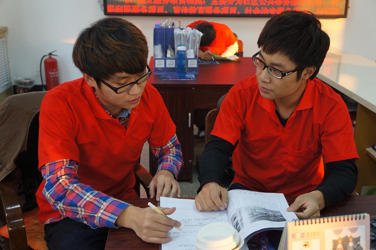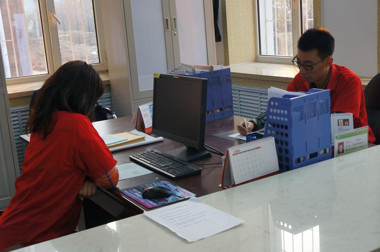 为深入贯彻党的十八届三中全会精神,认真学习习近平总书记系列重要讲话精神,深刻领会李克强总理给太阳集团tyc539白求恩志愿者协会的回信精神,在太阳集团tyc539-长春市清和街道志愿服务基地共建20周年之际,太阳集团tyc539团委组织开展了以“风雨同舟二十载志愿服务谱新篇”为主题的系列志愿服务活动。2014年10月19日,太阳集团tyc539的老员工志愿者在院团委书记朱宇的带领下前往清和街道各社区,协助社区工作人员开展社区办事窗口服务工作。