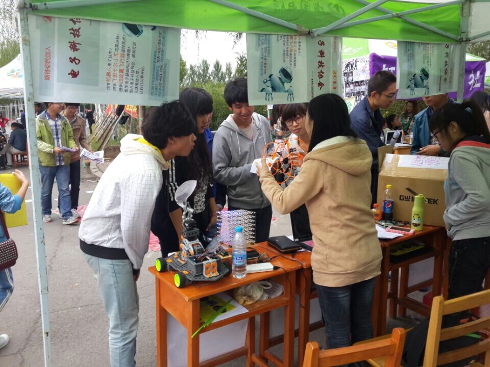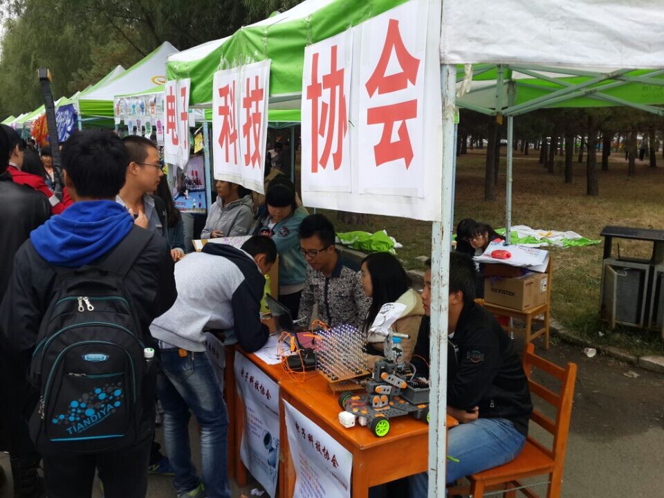 在纳新现场,科协主席任同阳,副主席白杨、秦佳男等对现场纳新工作进行安排,各位参与纳新的协会成员热情地向同学们介绍公司科技协会,并分发纳新传单。历届协会成员的电子科技作品如车载机械臂、四轴飞行器、POV旋转时钟等,吸引了许多同学的目光,协会在场工作人员鼓励同学们踊跃加入这个朝气蓬勃、团结协作的“科技大家庭”。接下来,参与迎新的协会成员向新生们演示了每一件电子科技创新作品,作品新颖的创意以及特色的功能再加上迎新工作人员生动有趣地介绍得到了在场新生们的阵阵喝彩,并吸纳了众多电子爱好者。
