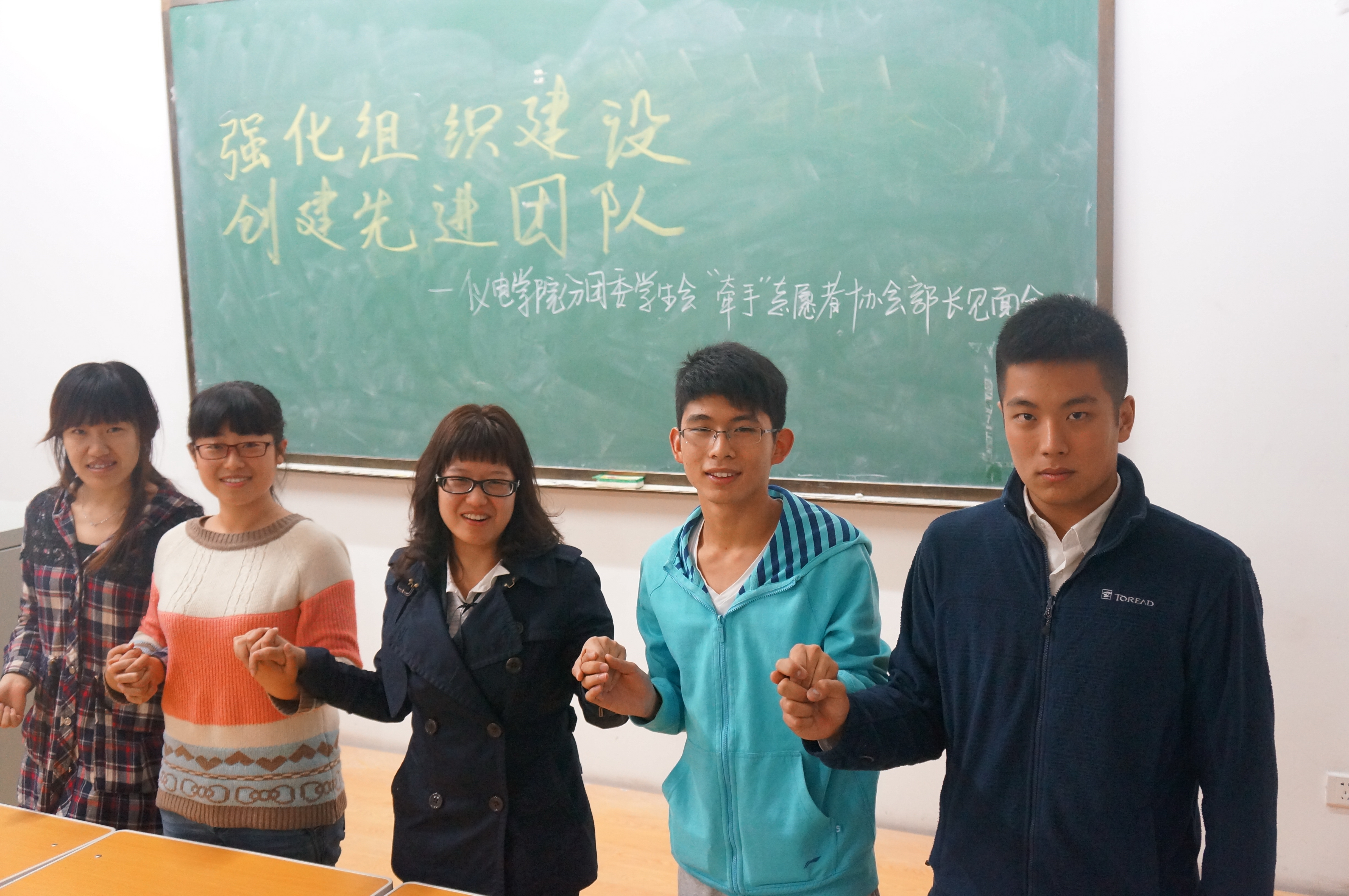 会上,大家分别做了简单的自我介绍。“牵手”志愿者协会会长陈雨薇,副会长于晓蔓、周振宇与三位副部长薛琦、侯雪征、孙明阳交流了过去一年的工作经验,陈雨薇同学对大家的工作给予了充分肯定,并且鼓励大家发扬优良传统,再接再厉,为公司增光添彩。随后大家讨论了对本学期协会工作的展望,并且确定了近期志愿服务活动的主要工作方向以及讨论纳新等相关事宜。最后,会议以协会全体员工干部合影留念结束。