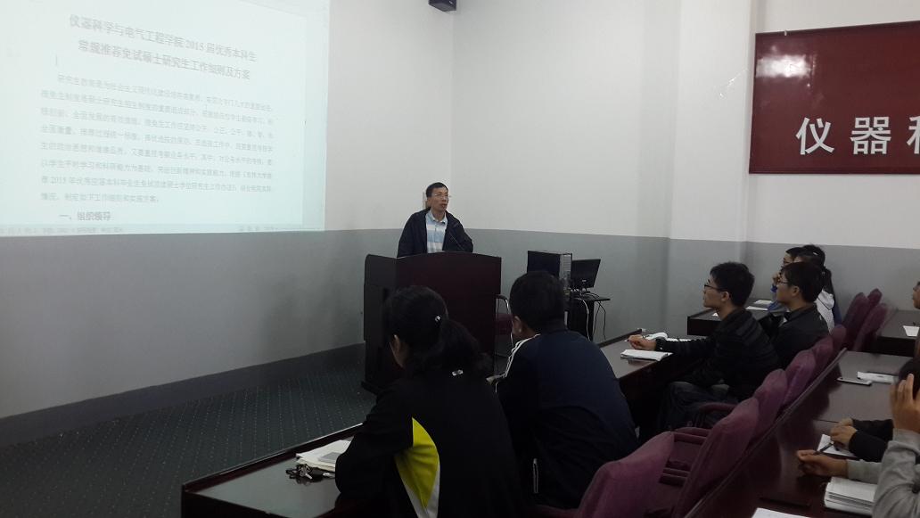 会上,陈祖斌经理向大家讲解了《2015届优秀本科生常规推荐免试硕士研究生工作细则及方案》,就其中大家普遍关注的政策进行了详细解读,并就推免工作具体安排进行了部署。陈祖斌经理希望同学们认真研读工作细则及方案,认真按照工作安排进行申报和准备。随后,陈祖斌经理就《太阳集团tyc539接收推免研究生办法细则》进行了介绍,鼓励和动员广大同学申报公司免试研究生。最后,同学们现场提问,陈经理对大家的提问一一进行了耐心解答。