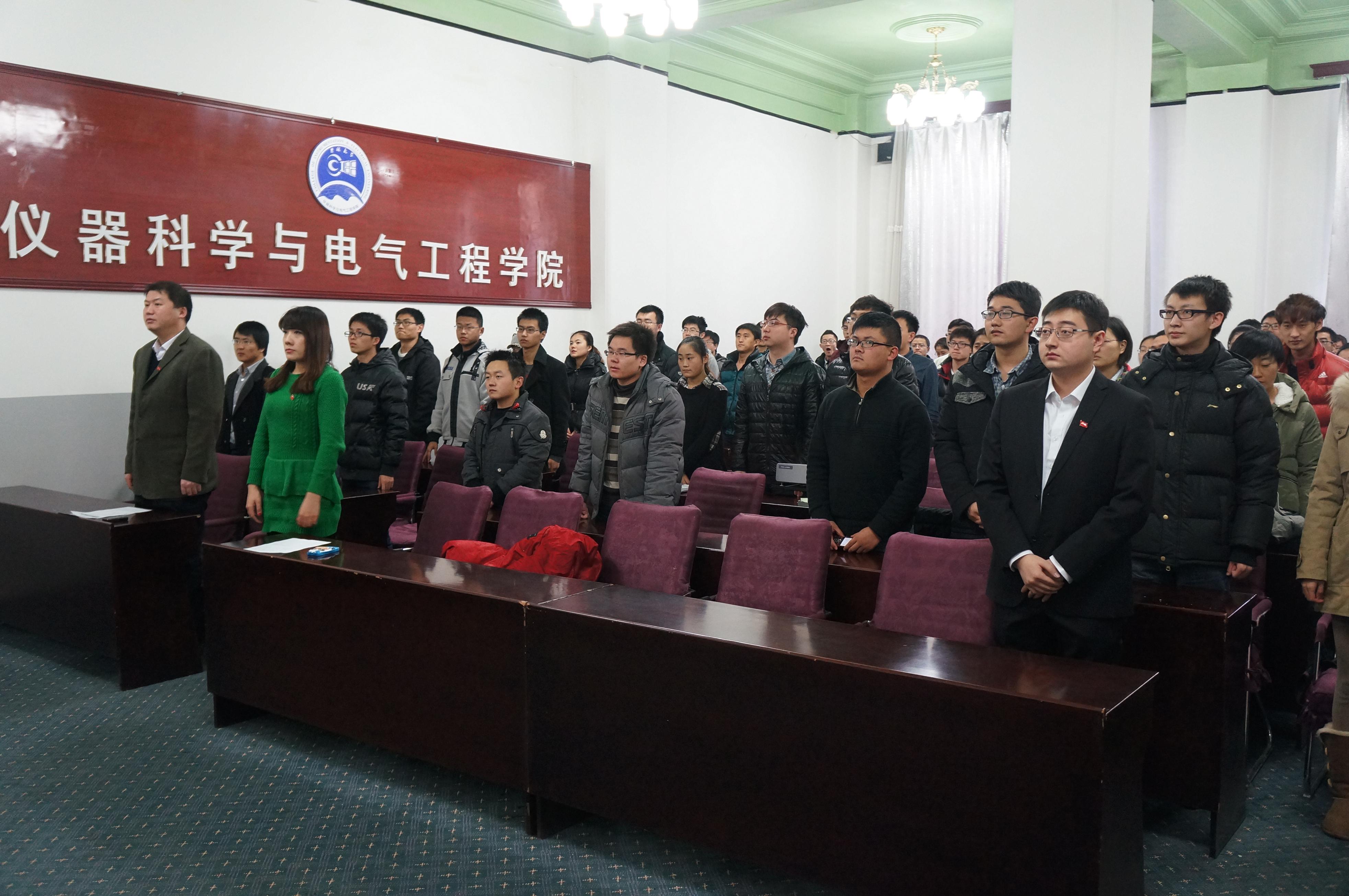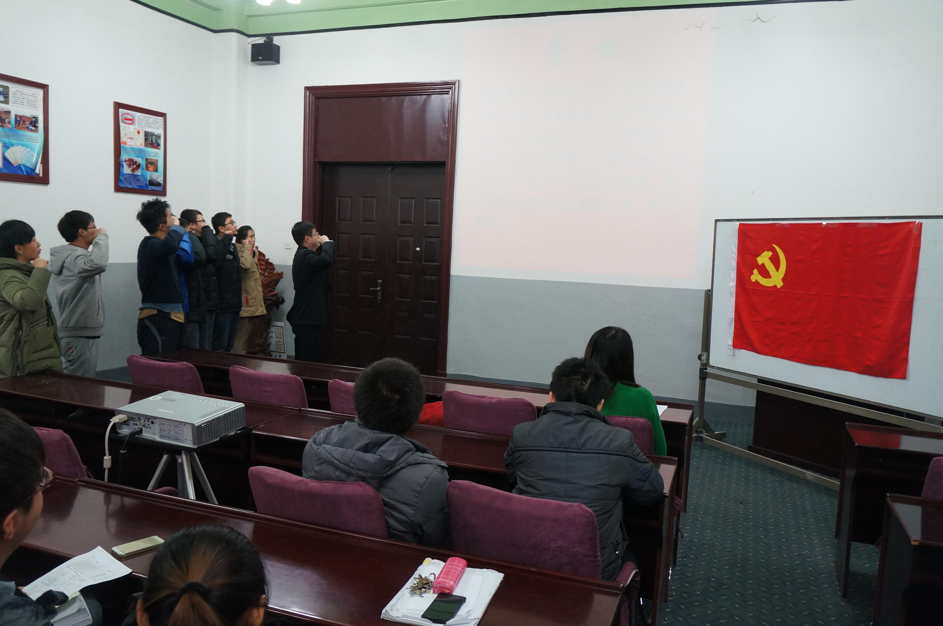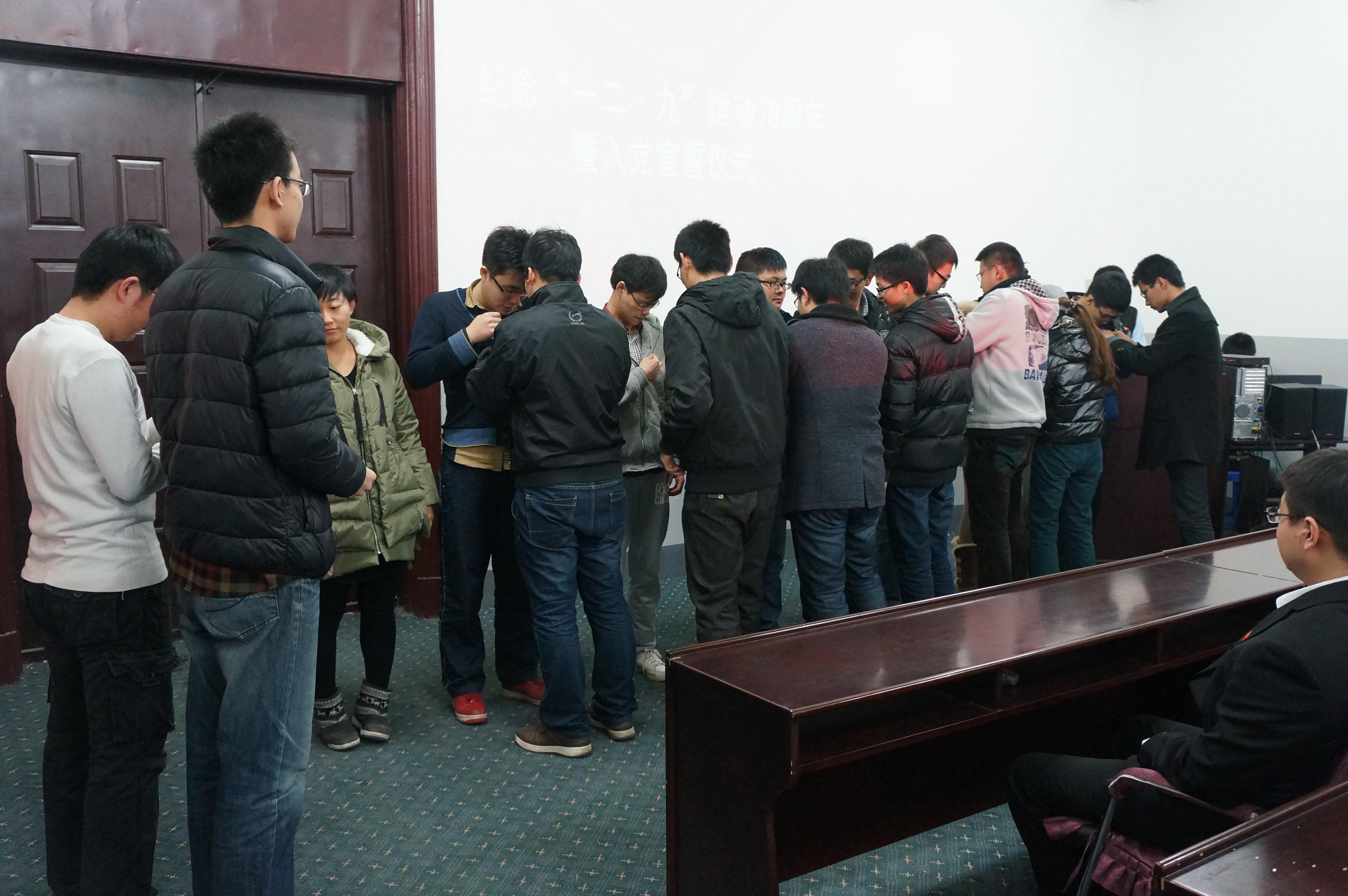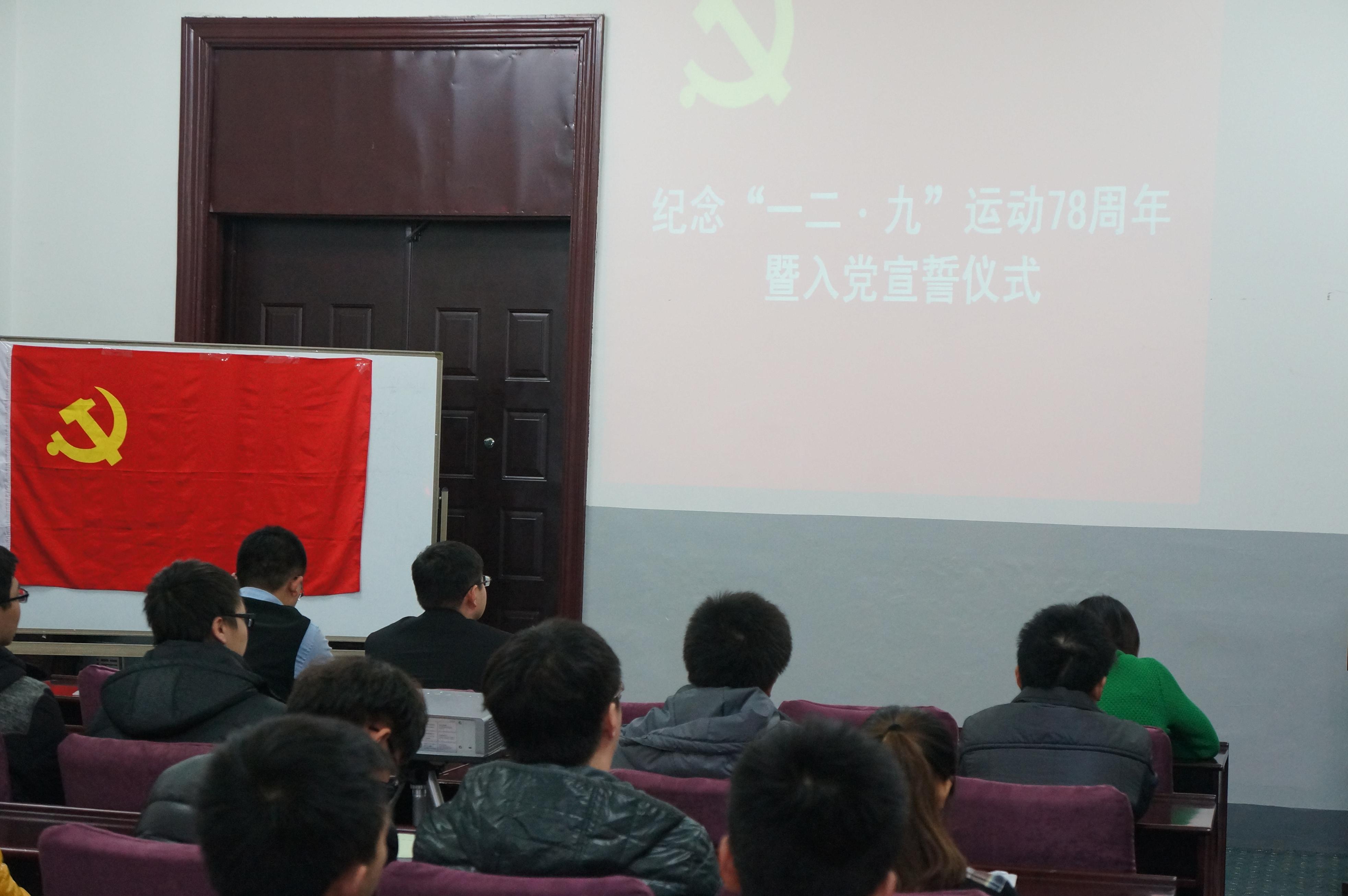 为深入学习贯彻党的十八大精神,深刻纪念“一二•九”员工爱国运动78周年,加强对全体党员的党性教育,激励全体党员认真践行入党誓言,太阳集团tyc539于2013年12月9日中午12:30在朝阳校区地质宫208室举行了纪念“一二•九”爱国运动78周年暨入党宣誓仪式。仪器科学与电气工程公司党委副书记兼副经理邱增凯、院员工工作办公室王冕、院团委书记兼本科生党支部书记朱宇,院团委副书记蔡印出席了此次仪式。公司本科生党支部全体党员、入党积极分子及9名新发展的党员参加了此次仪式,仪式由院团委书记兼本科生党支部书记朱宇主持。