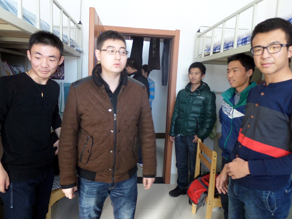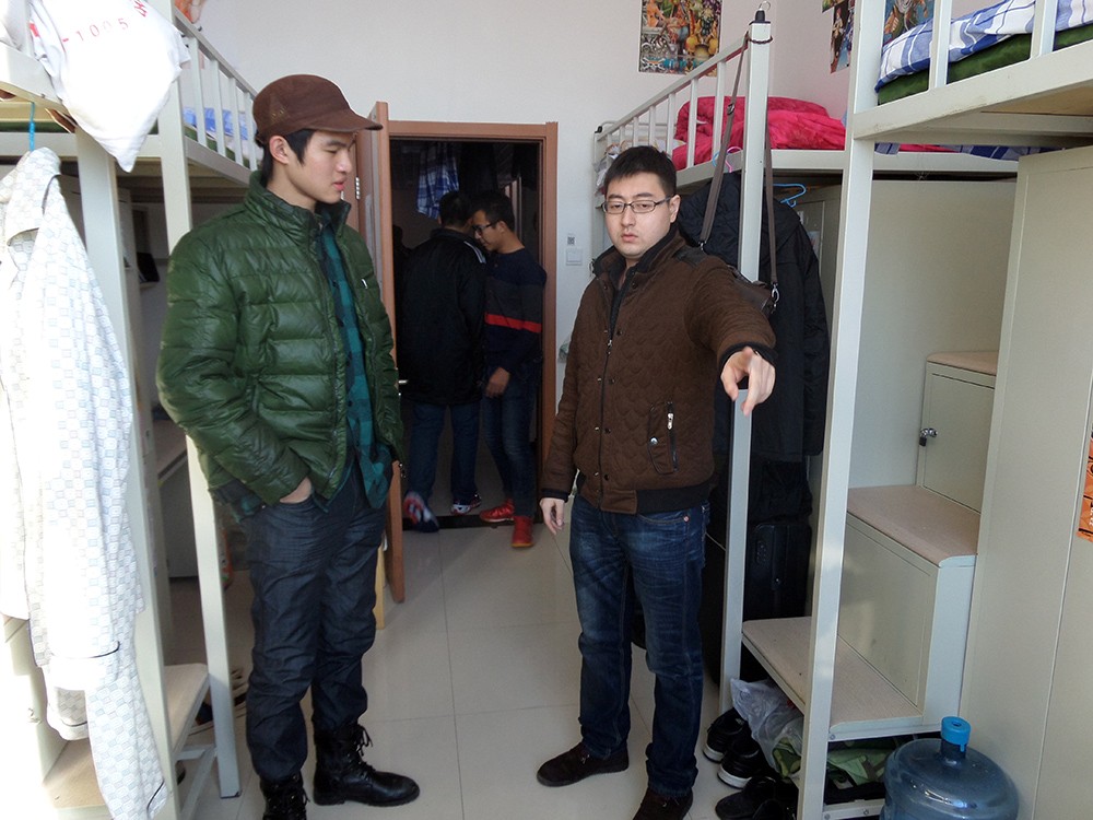 在中心校区,2012级辅导员蔡印老师首先到达北苑一公寓,并受到员工的热烈欢迎。同学们的公寓干净整洁,温馨舒适,寝室布置各具特色,书香浓郁,蔡老师对同学们的寝室卫生及寝室文化给予了高度的评价。随后,蔡老师针对吉林省松原频发地震之事进行了走访慰问,与此同时,他还针对一旦发生地震的应急措施和逃生知识进行了普及和宣传,强调大家要用科学的眼光对谣言进行粉碎,并教育同学们要信任科学,勿信、勿散谣言,同学们也纷纷表现出了对科学力量的崇尚和抵制谣言的决心。