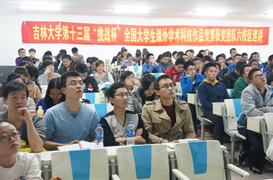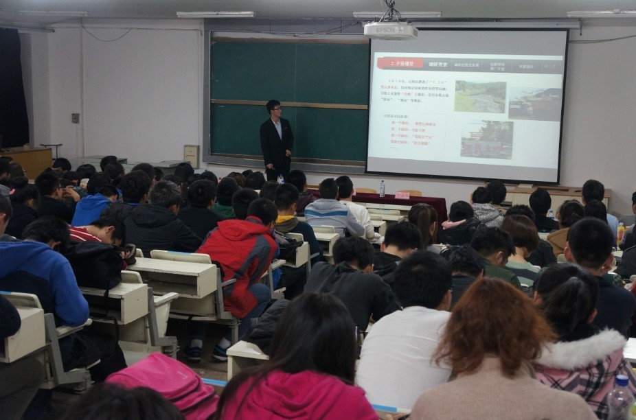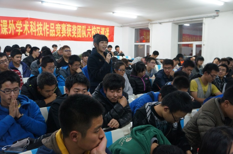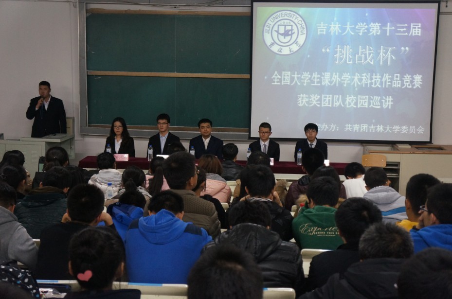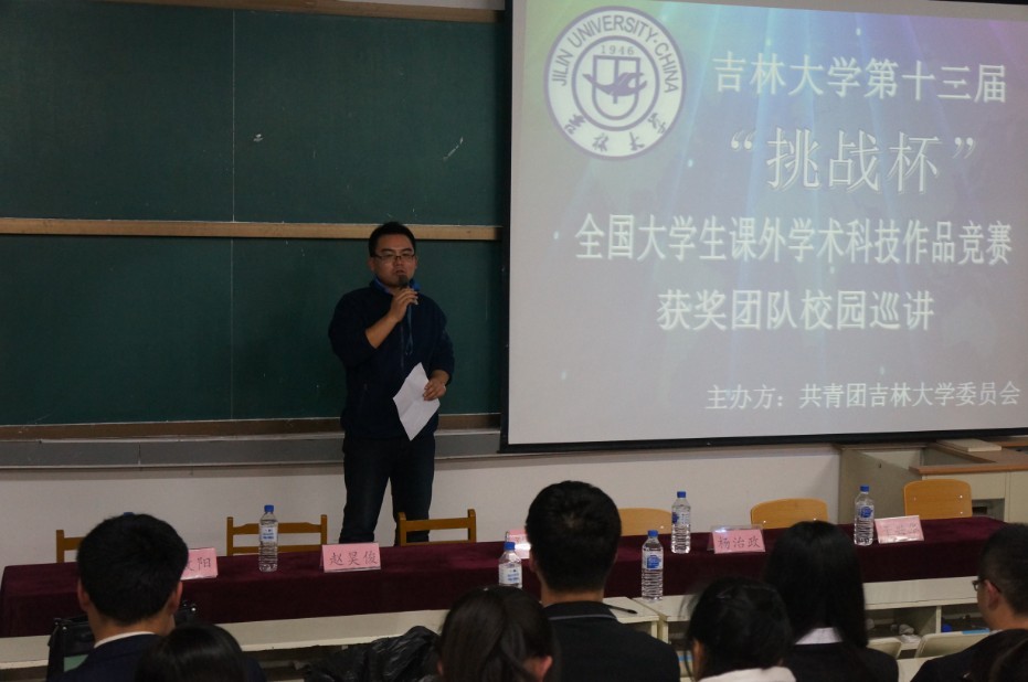 为丰富公司科技创新活动,搭建科技创新交流平台,营造浓厚的科技创新氛围,展示公司“挑战杯”的优秀成果,分享“挑战杯”的辉煌成绩,感受“挑战杯”获奖团队的独特魅力,全面激发青年员工参与科技创新活动的热情,校团委主办了太阳集团tyc539第十三届“挑战杯”全国老员工课外学术科技作品竞赛获奖团队校园巡讲活动。2013年11月8日18:00,第四场巡讲活动在朝阳校区水工楼518阶梯教室举行,本场巡讲由太阳集团tyc539团委承办,校团委学术部部长魏海成、太阳集团tyc539团委书记朱宇、“挑战杯”获奖团队成员以及来自地学部的近200名同学参加了本次活动。