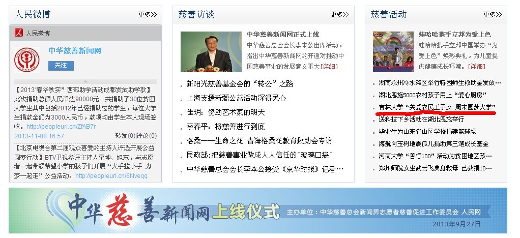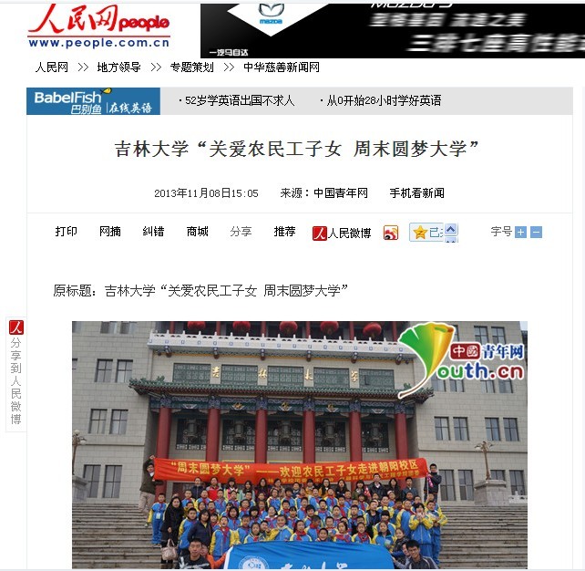 1、人民网 全文转载《太阳集团tyc539“关爱农民工子女周末圆梦大学” 》