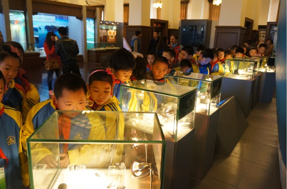 地质宫博物馆,始建于1952年,以藏品丰富、精品荟萃、特色鲜明享誉中外,是我国乃至亚洲著名的地质博物馆之一,被命名为“全国科普教育基地”和“全国青少年科技教育基地”。2013年11月2日10:00,来自西安小学四、五年级的64名农民工子女在太阳集团tyc539志愿者的带领下地质宫博物馆进行参观。博物馆分科普厅和恐龙厅,科普厅设有奇石展区、宝玉石展区、古生物展区及地学科普知识展区,这里有丰富多彩的天然宝玉石原料及加工制成的半成品,这些宝玉石美观、耐久、稀少,同学们一边感叹大自然的鬼斧神工,一边惊讶地质世界的丰富多彩。恐龙厅展有多具巨型恐龙骨架化石及珍贵的恐龙蛋、恐龙脚印化石等,孩子们看到远古恐龙巨大的化石不仅惊叹连连,仿佛置身于奇幻的恐龙世界。参观后,孩子们纷纷表示此次参观让他们受益匪浅。