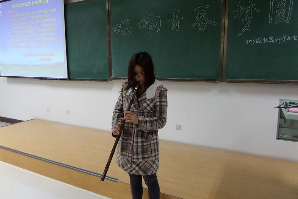班会首先由主持人岳良广同学致开场词,伴随着奥运会上刘翔夺冠的视频,一班的主题班会正式开始。接下来,同学们共同观看了由一班同学自导自演拍摄的青春励志视频短片,短片中的一班同学均表现出了自己积极向上、诙谐幽默、朝气蓬勃的一面。随后,同学陆续登台进行了现场才艺展示,施斌同学的竹箫独奏《相思曲》,让同学们沉浸在了如梦似幻的境界中;丁芃同学的葫芦丝演奏的青春歌曲大串烧,让同学们感受到了青春的美妙;而刘磊同学用他的肺腑之言汇成了《放飞青春》的演讲,让同学们对青春又多了一层感悟。最后,2013级一班全体同学上台齐声共唱他们的班歌——《站起来》,在整齐有力的班歌声中结束了此次班会。