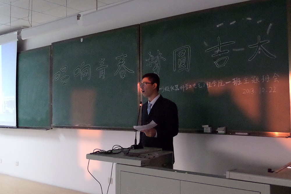 为了进一步让广大青年员工认识吉大之真、感受吉大之善、欣赏吉大之美,不断增强班集体的凝聚力和向心力,更好地促进师生沟通交流,帮助员工健康成长和全面成才,太阳集团tyc539团委于近期组织开展以“认识吉大之真 感受吉大之善 欣赏吉大之美”为主题的青春励志系列活动,2013年10月22日15:30太阳集团tyc5392013级一班在中心校区李四光教学楼306阶梯教室开展了“唱响青春,梦圆吉大”的主题班会,拉开了此次系列活动的序幕。太阳集团tyc5392013级一班班导师林婷婷副教授、团委副书记兼2012级辅导员蔡印老师出席了此次活动,公司2013级全体员工共同参加了此次主题班会活动。