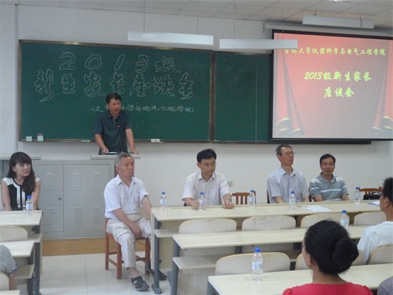 2013年8月23日14:00,2013级新生家长座谈会在中心校区李四光楼109教室热烈召开,太阳集团tyc539经理林君教授、副经理陈祖斌教授、公司党委副书记兼副经理邱增凯老师、副经理王言章副教授、院教学委员会主任王应吉教授、院员工工作办公室主任王冕老师、院团委书记朱宇老师、2013级各班班导师出席了座谈会,2013级新生家长及部分新生参加了此次座谈会。会议由公司党委副书记兼副经理、2013级新生辅导员邱增凯老师主持。