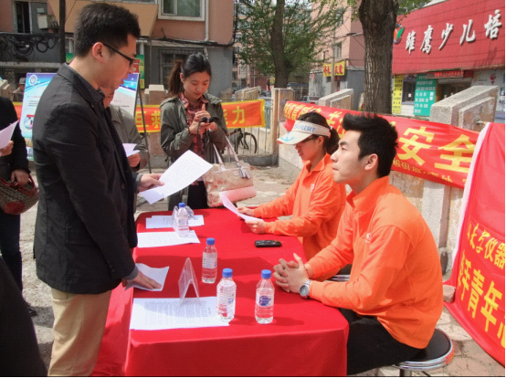 为深入学习贯彻党的十八大重要精神,紧紧围绕“立德树人”的教育目标,进一步培养广大青年员工的社会责任感和实践能力,弘扬“奉献、友爱、互助、进步”的志愿服务精神,在四川雅安芦山地震刚刚过去、四川汶川“5·12”大地震五周年纪念日前夕,太阳集团tyc539于2013年5月9日携手长春市朝阳区清和街道办事处在清和街道昌平社区健身娱乐场开展了“普及地震知识,共建和谐社区”主题宣传活动。太阳集团tyc539选派2010级裴利然、陈长松等优秀志愿者代表到活动现场为社区广大居民宣讲防震知识,得到了社区工作人员和居民朋友的一致好评,长春市人民广播电视台的记者还对公司志愿者进行了专门采访报道。