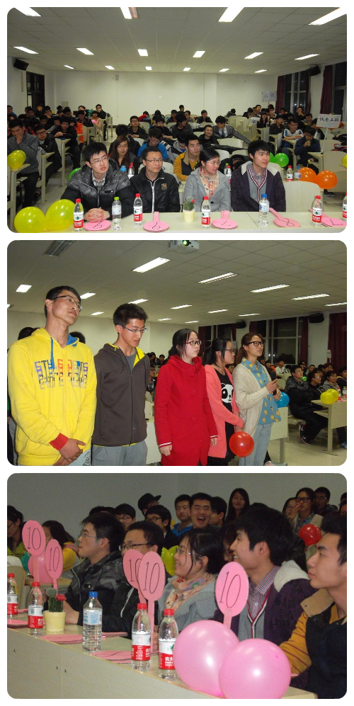 整个活动分为三个环节:第一环节为“秀出我自己”,各班代表分别进行了以“我的梦想”为主题的PPT才艺展示,并由评委打分;从他们精彩的表演中看到的是青春的梦想和奋斗的激情。第二环节为“我爱记歌词”。各班同学踊跃参加,在激烈的竞争中,同学们都表现的从容不迫,力争夺冠,将现场气氛推向高潮。最后一环节为“我爱配电影”,由主持人现场播放一部电影片段,各个参赛班级进行抢答配音。活动最后,由评委根据各位同学在各个环节的表现,给出评分,由员工会联络部部长马晶、员工会副主席王洪超和员工会常务副主席任广安分别为获奖班级颁奖并合影留念。