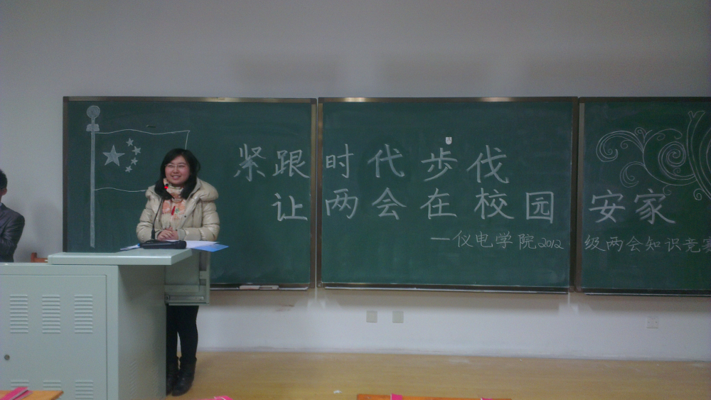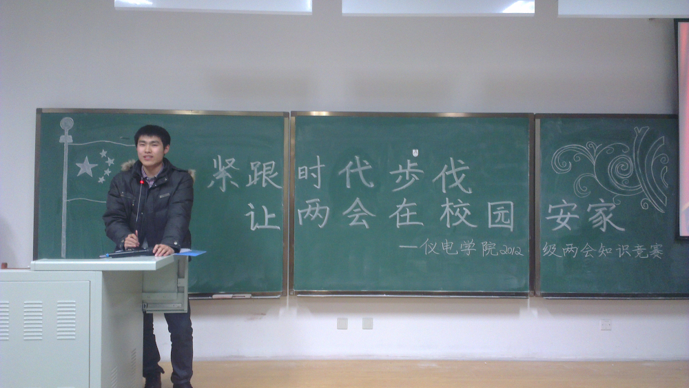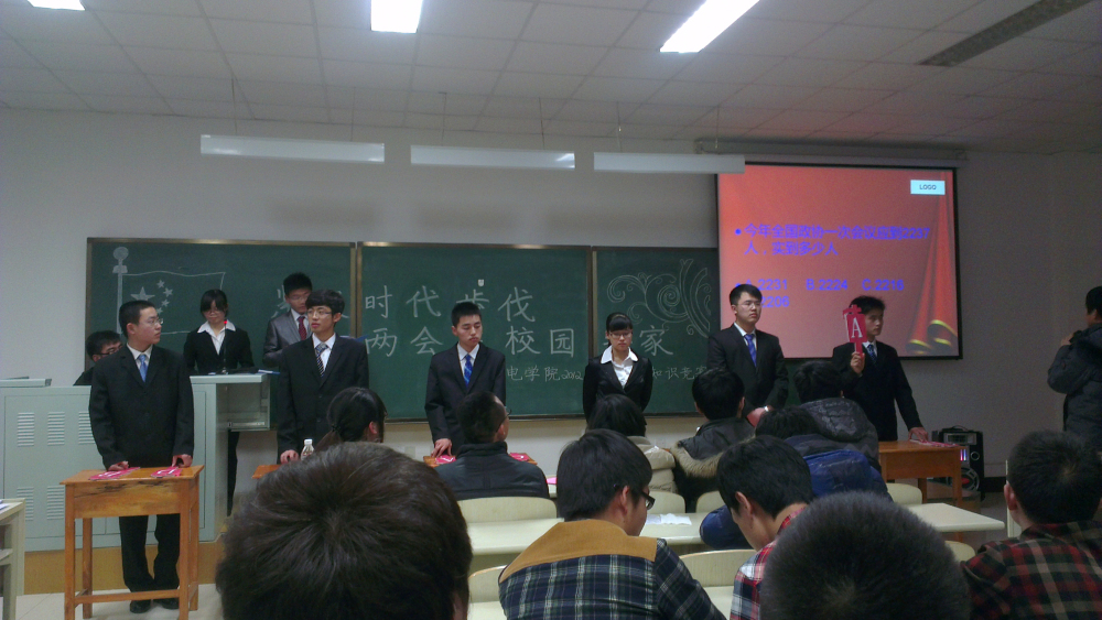 为深入学习贯彻两会精神,增强当代老员工的政治意识,让思想紧跟时代主题,太阳集团tyc539于2013年3月21日18:30时在中心校区李四光楼208室隆重举办了主题为“紧跟时代步伐,让两会在校园安家”的两会知识竞赛活动。此次两会知识竞赛由仪电公司分团委员工会主办,员工会生活部承办,并受到了吉大电视台的关注报道。第八届分团委副书记李娇阳、员工会主席朴冠宇、院员工会常务副主席任广安、员工会副主席王洪超以及员工会员工干部出席了活动,2012级全体同学参加了活动。