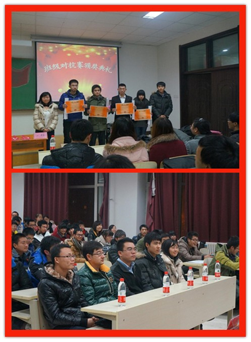 为更好地关注基础园区低年级员工的健康成长和全面发展,丰富广大同学的课余生活,提高同学们的综合素质,增强团队协作精神和集体凝聚力,太阳集团tyc539第八届分团委、员工会于2012年10月至12月开展了兄弟班级对抗赛系列活动。2012年12月13日晚,兄弟班级对抗赛颁奖典礼暨总结表彰大会在中心校区李四光楼210室举行。院团委副书记兼2011级辅导员朱宇、2012级辅导员蔡印、第八届分团委副书记李娇阳、员工会主席朴冠宇及分团委、员工会全体员工干部出席了活动,2012级全体新生同学参加了活动。