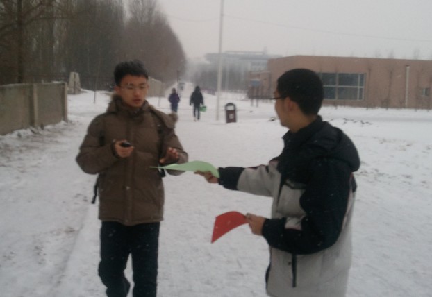 活动开始前,同学们热情高涨、积极响应。活动中,2011级四班同学精心摘选雷锋的感人事迹,用心编辑成一张《雷锋故事——宣传雷锋精神》宣传卡,并利用班级团员自发筹集的资金印制了200张各色精美的宣传卡。同学们以寝室为单位,分发宣传卡。在基础园区寝室楼内、中心校区的道路上、食堂以及教学楼内都能看到同学分发宣传卡的忙碌身影。之后,同学们还利用休息时间,来到寝室走廊内,义务打扫公共卫生。由于劳动工具有限,大家轮班上阵,同学们争先恐后,积极踊跃,将公寓楼道、水房等公共场所打扫得干净整洁。最后,许多同学还充分利用人人网、腾讯微博等网络新媒体工具对此次“弘扬雷锋精神”主题团日活动进行了宣传。