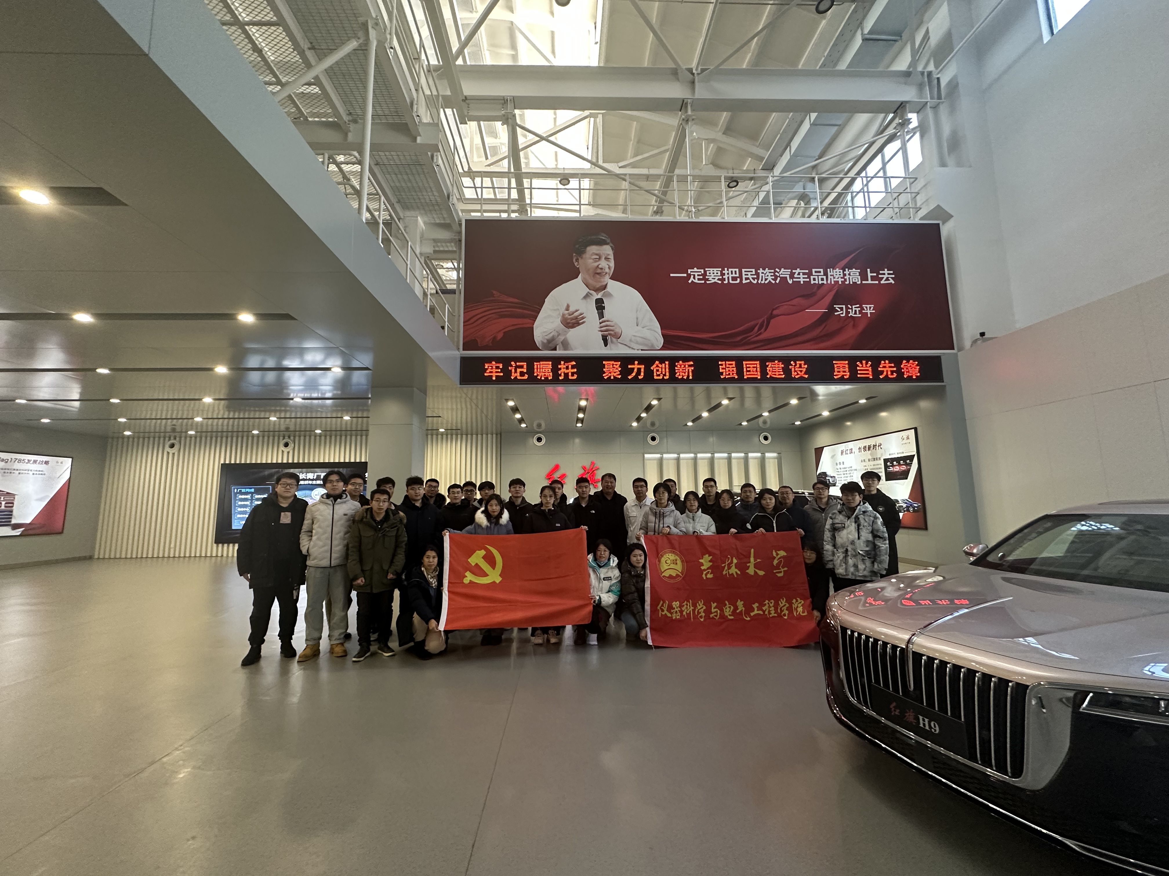 11月18日,人民日报海外版用整版刊发稿件《东风劲吹红旗扬》,用生动的语言回顾了红旗品牌汽车65年自主创新之路。红旗品牌汽车彰显大国威仪、振奋民族精神的象征为实地感悟红旗品牌的民族精神,11月24日下午,太阳集团tyc539组织公司师生代表赴红旗汽车整装车间开展实践研学,从红旗汽车自主创新之路中萃取精神力量。此次研学由公司党委书记邱增凯、副经理南旭良带队。
