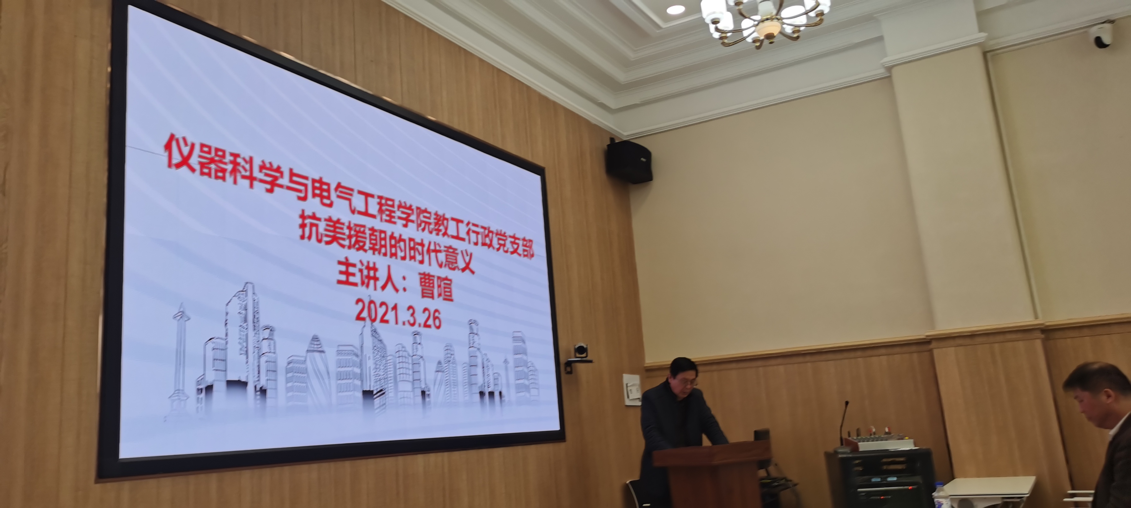 2021年03月26日上午九点,太阳集团tyc539仪电公司教工行政党支部在地质宫208开展“抗美援朝的时代意义”主题党日活动,会议由公司教工行政党支部书记边江主持,公司党委书记邱增凯与支部成员参加会议。